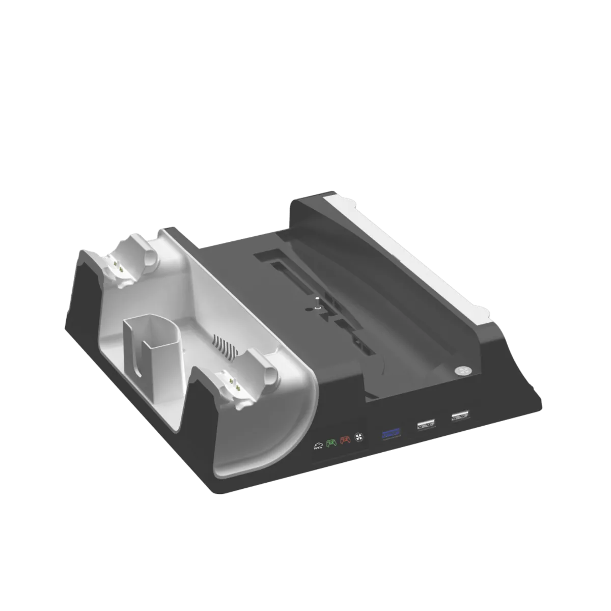 پایه شارژر و فن خنککننده تسکوگیم مدل TGS 20 یک پایه چندمنظوره برای کنسول PS5 است که امکان شارژ همزمان دو دسته بازی، خنککردن کنسول با فن دوگانه و نگهداری لوازم جانبی و دیسکها را فراهم میکند. همچنین با ترکیب رنگ سفید و مشکی طراحی شده که کاملاً با ظاهر کنسول PS5 هماهنگ است و جلوهای یکپارچه و حرفهای به ست گیمینگ شما میدهد و دارا بودن طراحی منظم، بدنه مقاوم ABS و هماهنگی ظاهری با کنسول PS5، این محصول را به گزینهای کاربردی و شیک برای هر گیمر تبدیل کرده است.