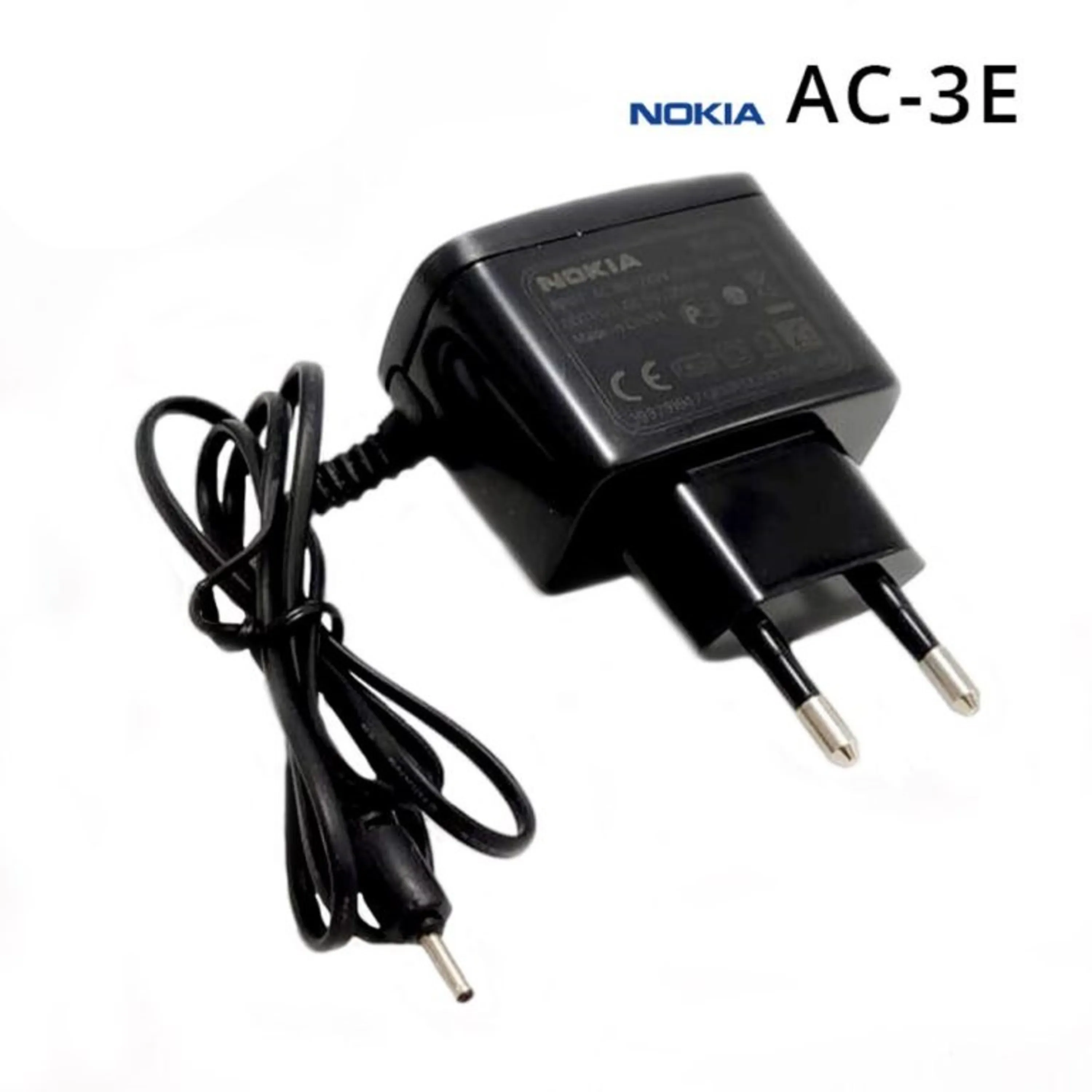 شارژر اصلی سوزنی (فیش ریز) نوکیا AC_3E با ولتاژ ورودی 100 تا 240 ولت، ولتاژ خروجی 5 ولت و شدت جریان خروجی 350 میلی آمپر که یک کابل شارژ متصل با کانکتور سوزنی دارد و برای گوشیهای نوکیا که با پورت شارژ استاندارد 2mm شارژ میشوند، مناسب است.