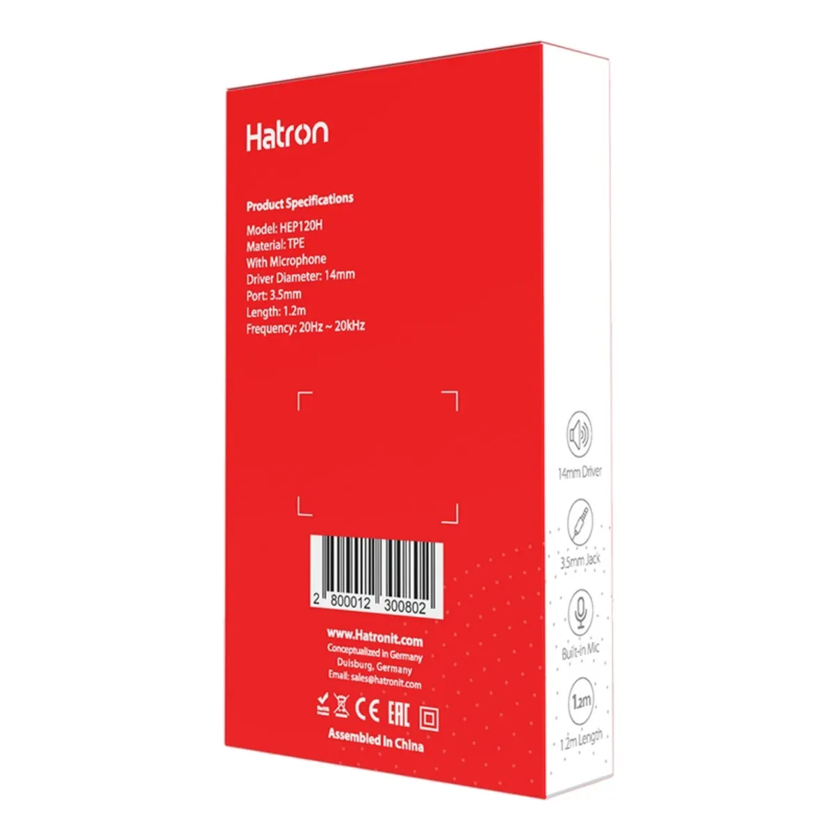 هندزفری باسیم Hatron HEP120H با طراحی ساده و ارگونومیک، صدایی شفاف و متعادل ارائه میدهد. این مدل از رابط 3.5 میلیمتری بهره میبرد و با کابل 1.2 متری و روکش مقاوم TPE، گزینهای مناسب برای استفاده روزمره، تماس و پخش موسیقی است.