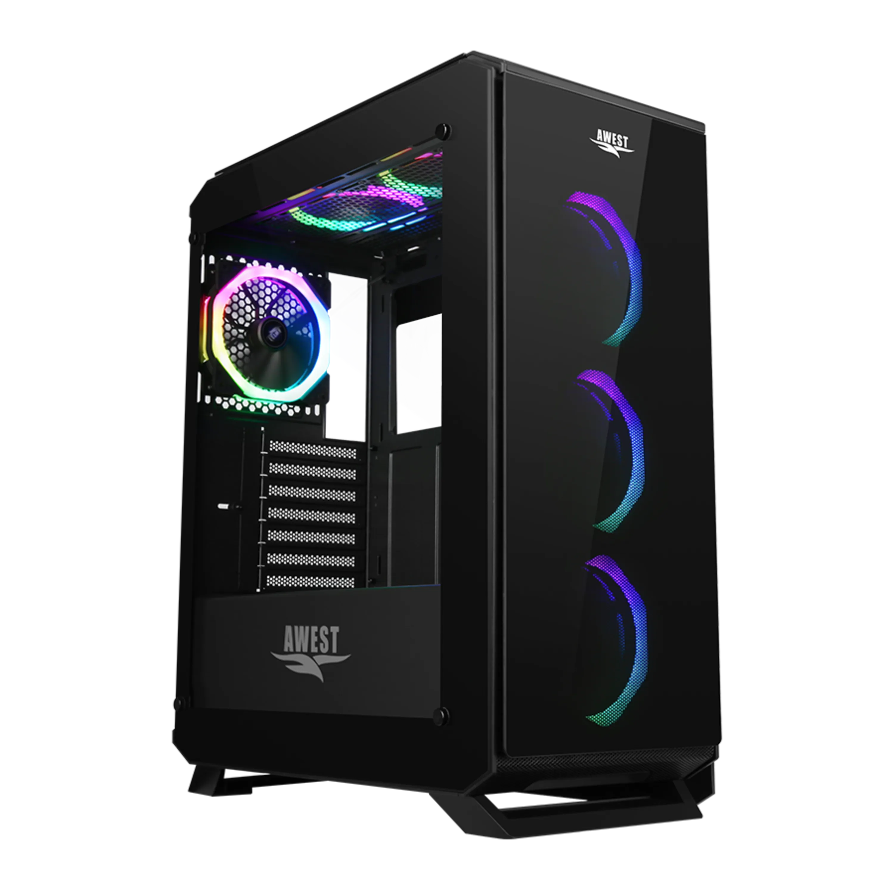 سه عدد فن خنک کننده در پشت پنل جلویی AWEST GT-AV03-BG ، دو عدد فن در زیر پنل بالایی و یک عدد فن در پشت کیس نصب شده میباشند. تمامی این فنها از نوع سوپر سایلنت بوده که نشان از نویز بسیار پایین آنها دارد.
