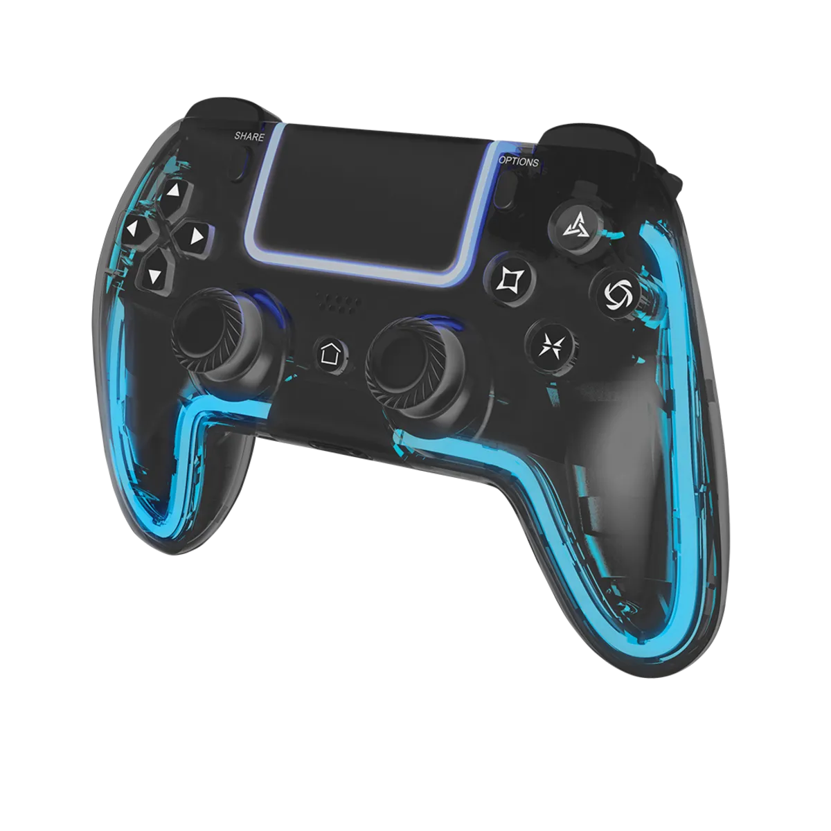 TG158WN با بدنه پلاستیک شفاف و براق (ترکیب پلاستیک مقاوم) مثل یه الماس تو دستات میدرخشه. این بدنه شفاف حس لوکس و خفنی بهت میده که تو دستههای معمولی پیدا نمیشه. نوار نورهای رنگارنگ داخلی، که با دکمههای روی دسته میتونی افکتهاشون رو عوض کنی، ستآپ گیمینگت رو به یه صحنه تورنمنت جهانی تبدیل میکنه. از افکتهای تند و تیز برای بازیهای اکشن مثل Call of Duty Mobile تا نورهای آروم برای بازیهای داستانی مثل Horizon Zero Dawn، همهچیز با یه دکمه تو دستته. با وزن 232 گرم و اندازه 160x108x60 میلیمتر، این دسته مثل نینتندو سوییچ خوشدست و راحته و ساعتها بازی کردن باهاش لذتبخشه.