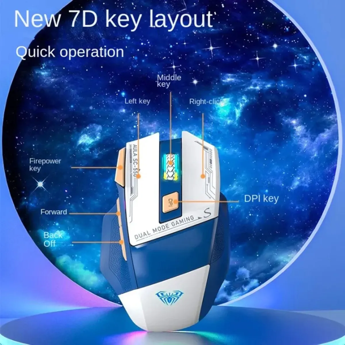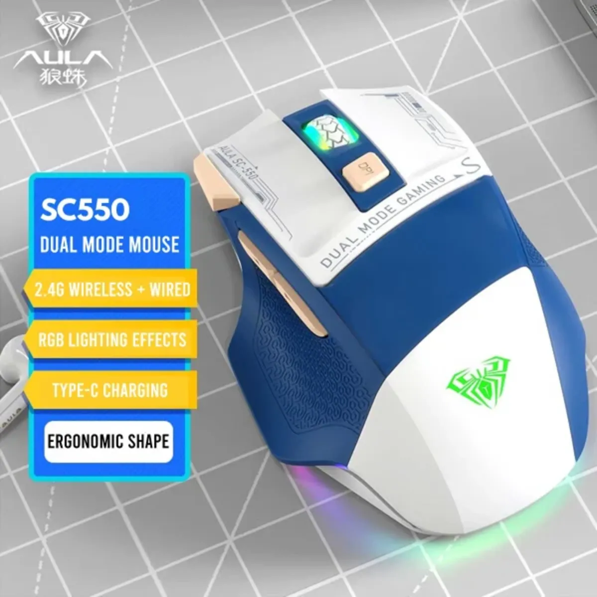 ماوس گیمینگ آئولا مدل SC550 یکی از محصولات پرقدرت و انعطافپذیر برند آئولا است که بهطور ویژه برای گیمرهای حرفهای طراحی شده است. این ماوس قابلیت استفاده در دو حالت بیسیم (Wireless) و باسیم (Wired) را دارد؛ بنابراین میتوانید بسته به شرایط، هم از آزادی عمل بیسیم لذت ببرید و هم در مواقع حساس، از پایداری اتصال باسیم بهرهمند شوید.