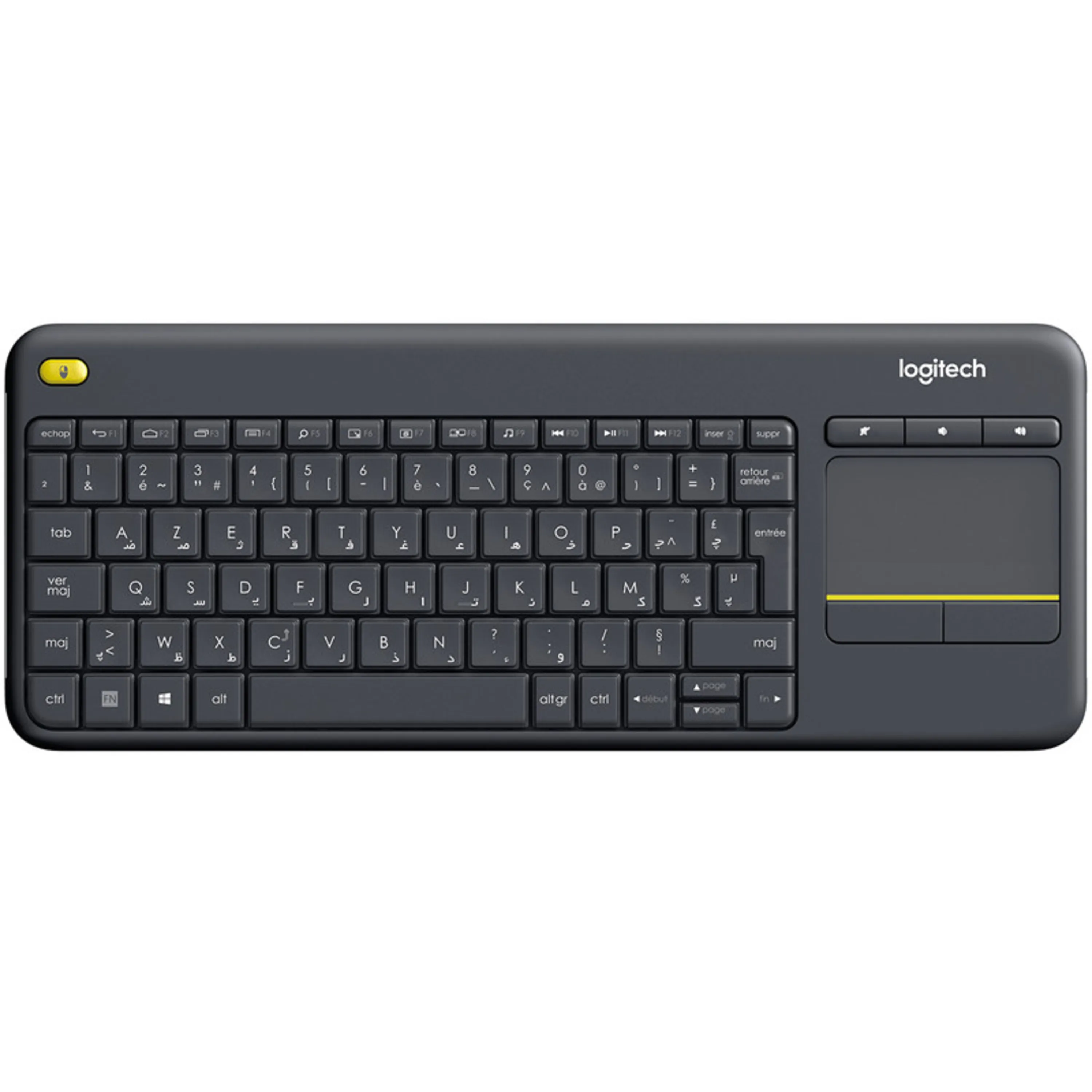 کیبورد بی سیم لاجیتک مدل K400 PLUS محصولی از شرکت LOGITECH است که از طریق دانگل USB به رایانه شما متصل میشود و میتواند بهعنوان یک دستیار حرفهای برای کار با رایانه باشد. این کیبورد دارای 83 کلید بهاضافهی 16 کیلد میانبر است. در سمت راست کیبورد K400 PLUS یک تاچ پد تعبیهشده که حس کار مشابه با لپتاپ را به کاربر منتقل میکند. در بالای تاچ پد سه کلید برای کنترل صدا در رایانه مشاهده میشود که میتواند بسیار کاربردی باشد. کیبورد بی سیم لاجیتک مدل K400 PLUS انرژی خود را از دو باتری آلکالاین سایز AA تأمین میکند که به یاری آن میتوان تا 18 ماه از کیبورد استفاده کرد. تاچ پد ارائهشده روی کیبورد بی سیم لاجیتک مدل K400 PLUS از فرمانهای چند لمسی پشتیبانی میکند. کلیدهای کیبورد لاجیتک مدل K400 PLUS در فاصلهی کمی از هم قرار گرفتهاند که این موضوع باعث شده که این کیبورد ابعاد کوچکتری نسبت به محصولات دیگر داشته باشد. جنس بدنهی K400 PLUS از پلاستیک باکیفیت است که میتواند در برابر بسیاری از صدمات روزمره مقاوم باشد. برچسب چاپی روی کلیدهای کیبورد K400 PLUS از کیفیت چاپ خوبی بهره میبرند و بهجرئت میتوان گفت که هیچگاه از بین نمیروند. اگر قصد تهیهی یک کیبورد با ابعاد و کیفیت مناسب را دارید، K400 PLUS میتواند انتخاب خوبی باری شما باشد.