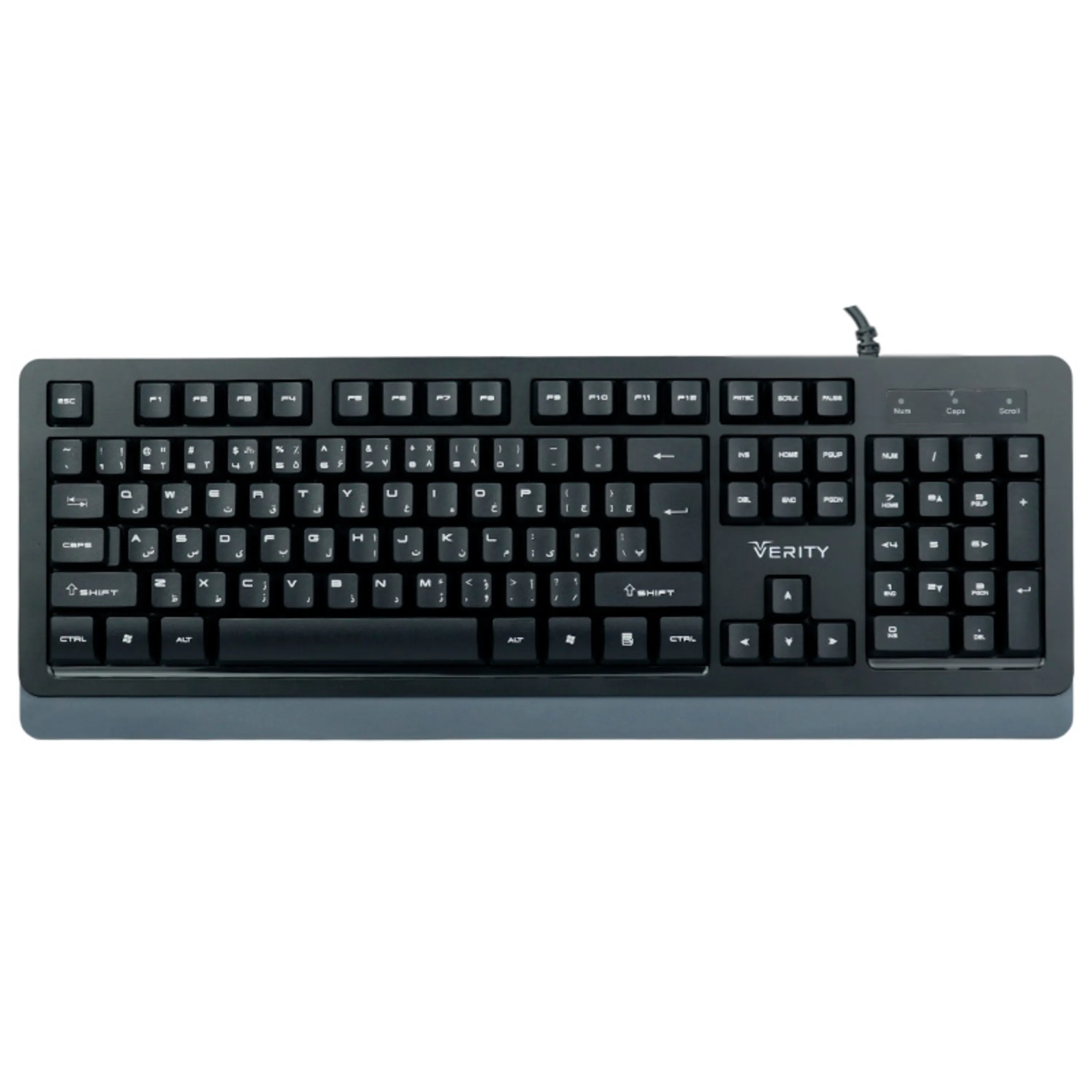 کیبورد V-KB6136 مناسب برای استفاده استفاده روزانه میباشد. بر روی این کیبورد وریتی تعداد 104 عدد کلید طراحی و تعبیه شده است.. بر روی تمام این کلید ها حروف فارسی حک شده اند . این کیبورد توسط یک کابل USB به سیستم شما وصل می شود و طول این کابل معادل 1.5 متر می باشد. طراحی ارگونومیک و سایلنت بودن صداهای کلید از دیگر ویژگی های این محصول میباشد.