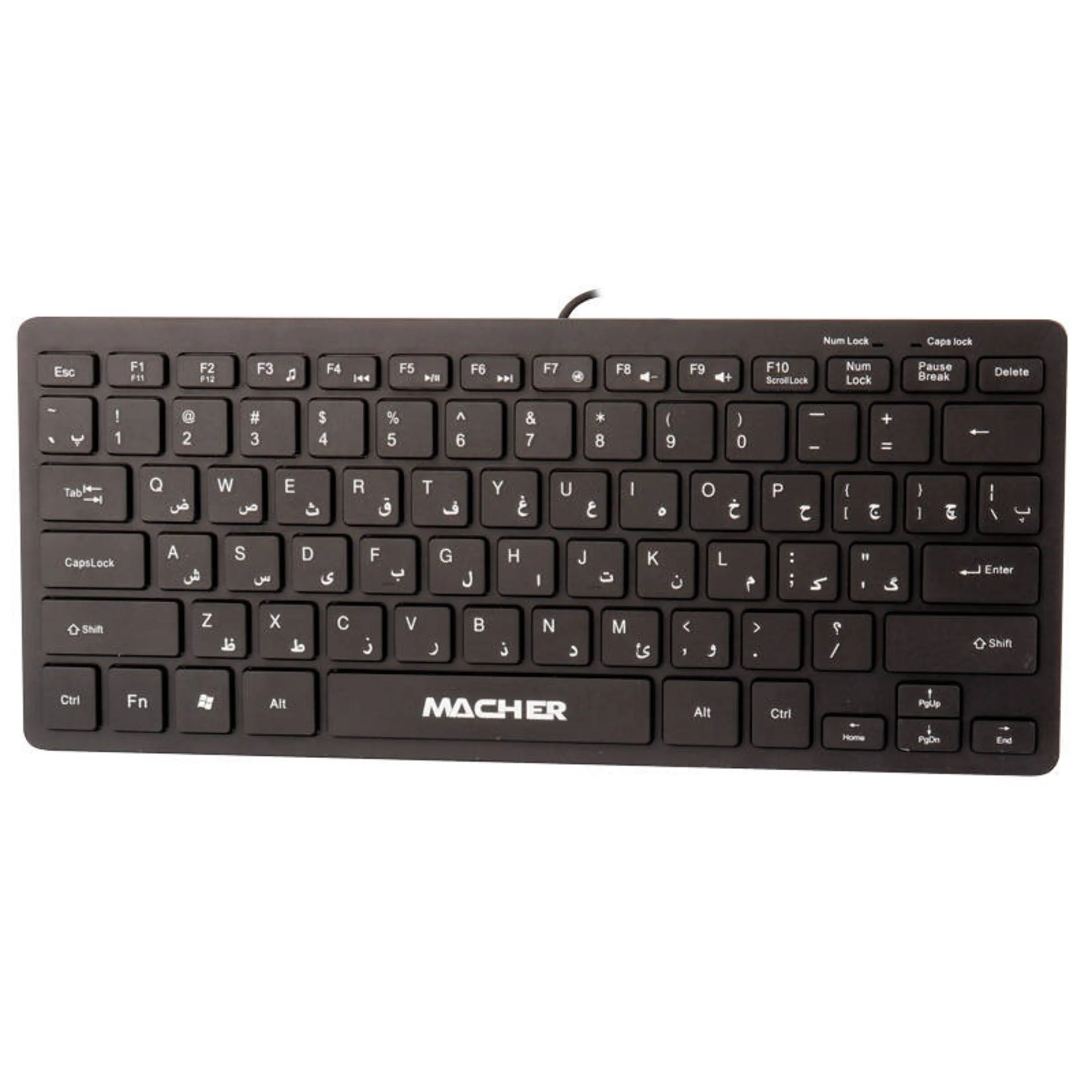 صفحه کلید با سیم مچر MR-314 مجهز به 78 عدد کلید شامل کلید های مولتی مدیا و FN است و دارای حروف فارسی حک شده بر روی کلید ها می باشد. این محصول دارای 2 عدد نشانگر LED به نتظور نمایش وضعیت کارکرد کیبورد بوده و دارای بدنه ای از جنس پلاستیک با کیفیت مقاوم در برابر ضربه فشار و سایر آسیب های فیزیکی است.طراحی جمع و جور صفحه کلید بدون داشتن کلید های شماره گزینه ای مناسب برای کمک به شما در صرفه جویی فضا بر روی میز کار شما خواهد بود. طراحی پورت USB 2.0 که طبق استاندارد جهانی ساخته شده است.کلید های با ماندگارس طولانی که با مواد ABS با کیفیت بالا ساخته شده اند چاپ با پوشش UV بادوام همه اینها باعث می شود کلید ها با چرخه عمر سوئیچ 10000000 بار بادوام باشند.