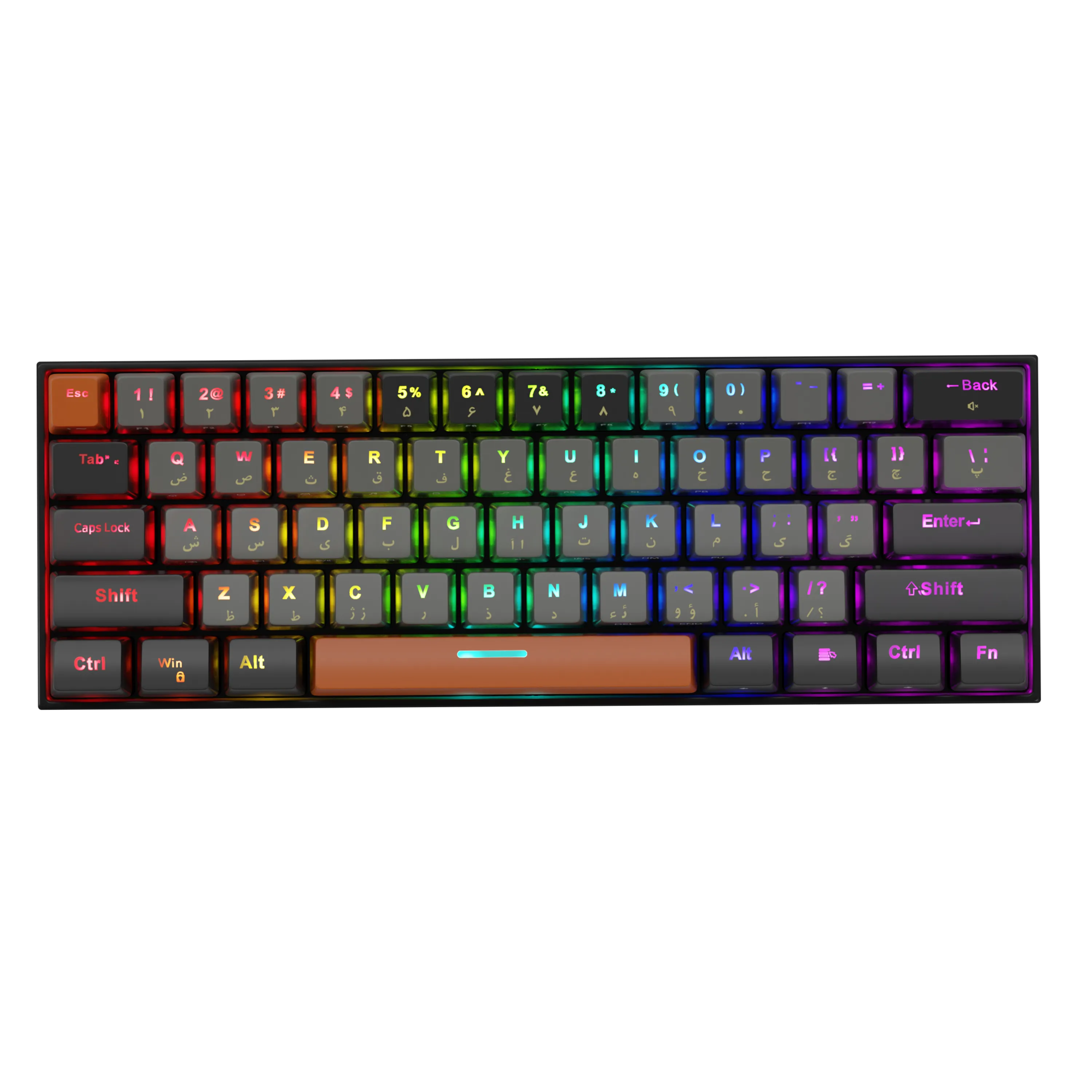 این کیبورد دارای 61 کلید و 12 کلید میانبر با استفاده از دکمه Fn است که دسترسی سریع به امکانات مختلف را برای شما فراهم میکند. کلیدهای میانبر به شما کمک میکنند تا به راحتی و سریعاً به عملکردهای مختلف دسترسی پیدا کنید و تجربهای بینقص از بازی داشته باشید.