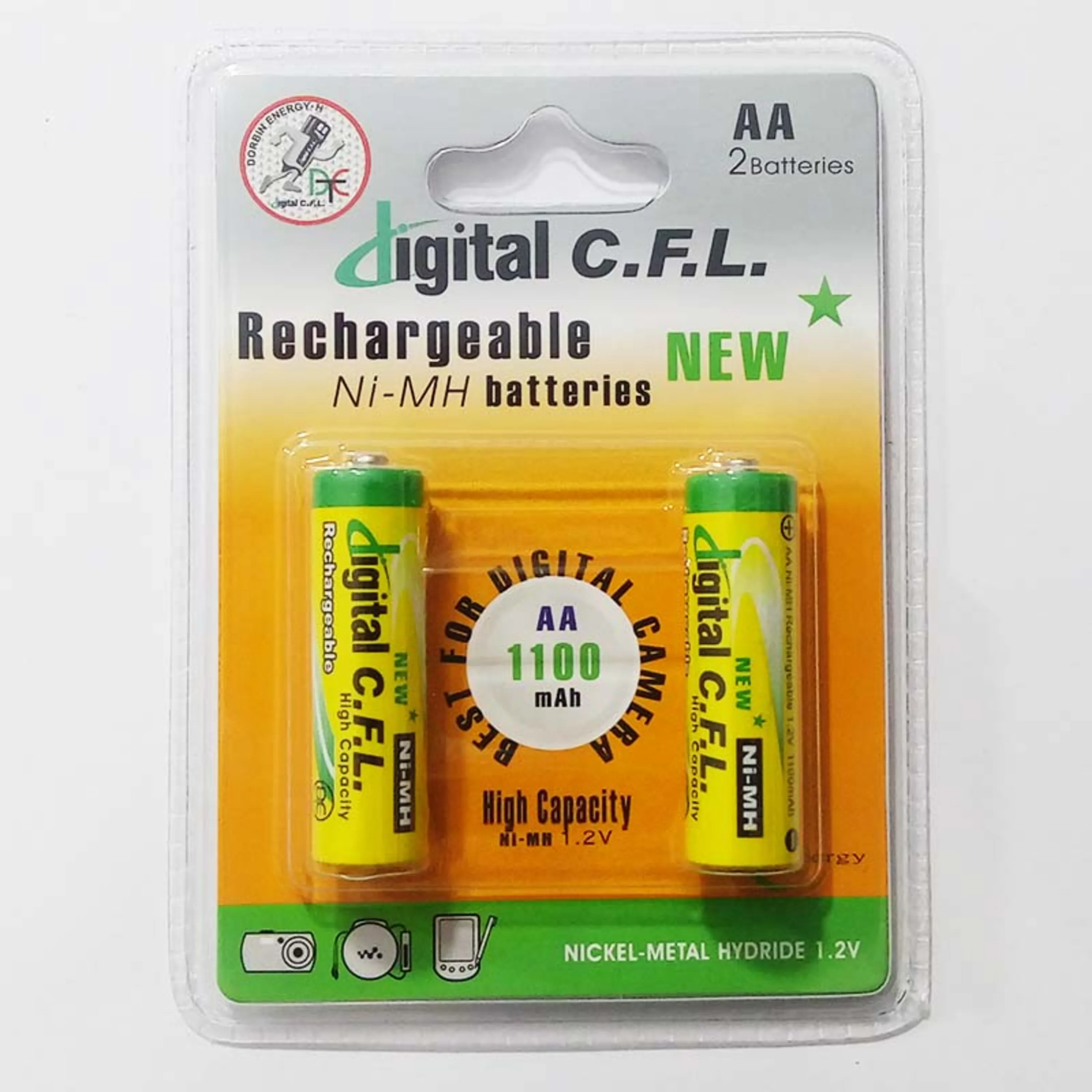 مشخصاتمشخصاتبرندDigital C.F.Lنوع باتریقلمی AAولتاژ باتری1.2 ولتظرفیت باتری1100 میلی آمپر ساعتنوع تکنولوژینیکل – متال هیدریدقابلیت های باتریماندگاری طولانیچرخه عمر مفید1000 چرخهتعداد باتری های موجود در پک2 عددتعداد باتری های قابل شارژ2 عدد