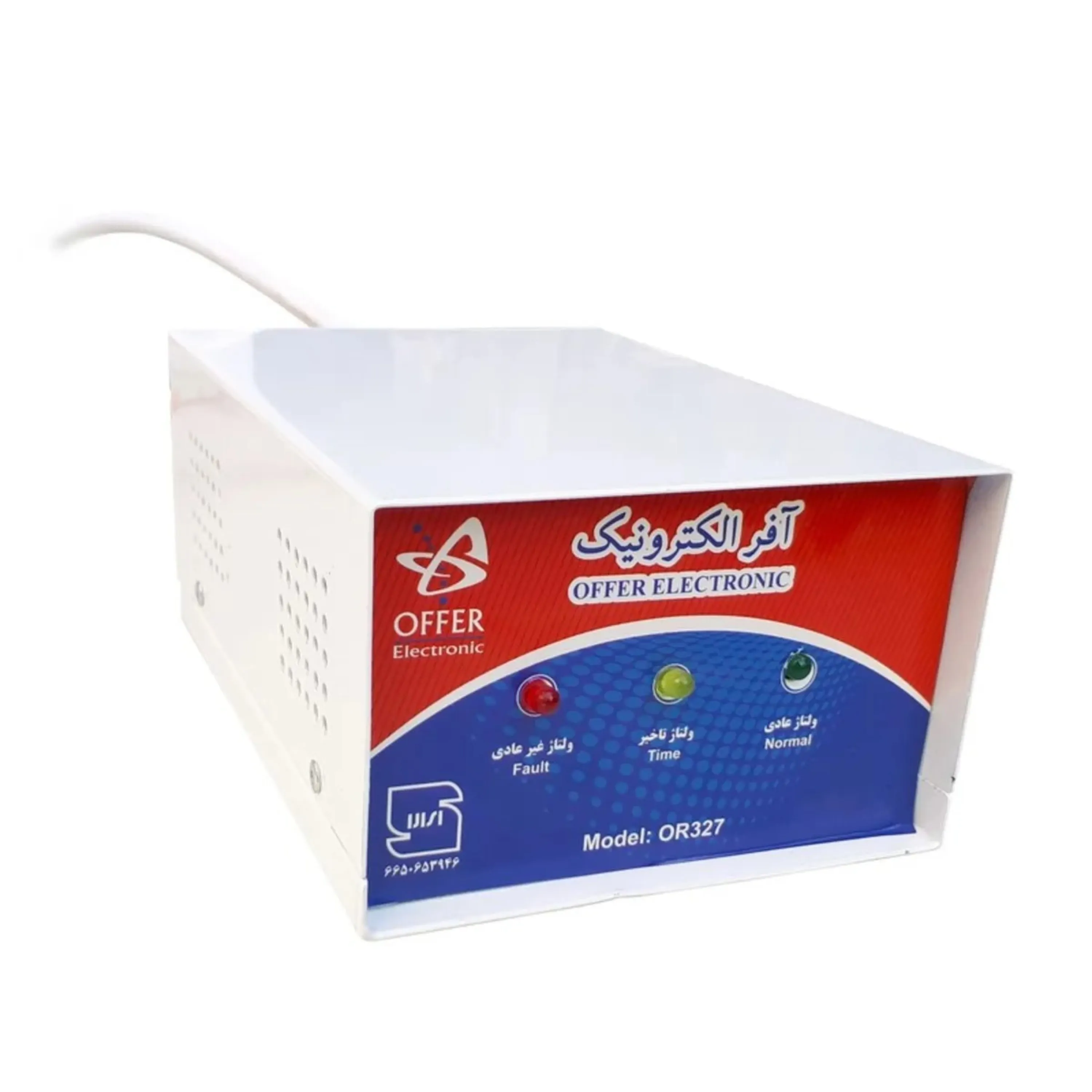 شرکت آفر الکترونیک در راستای کارآفرینی و حمایت از تولید داخلی پا به عرصه تولید گذاشته,وجه تمایز این شرکت نوآوری در طرح های بسیار زیبا و کیفیت بی نظیر آن می باشد.سعی ما و شرکت ما بر این است که از نظر میزان تنوع محصولات و رضایتمندی مصرف کنندگان محترم جزء برترین تولیدکنندگان داخلی باشیم, این محافظ برق از نوع آنالوگ بوده و برای یخچال طراحی شده است و از آن دربرابر افزایش و کاهش ولتاژ محافظت میکند. این موضوع مانع از آسیب دیدن مدار داخلی یخچال میشود. این محصول مجهز به 2 پریز ارتدار است. حداقل ولتاژ قطع جریان این دستگاه 170 ولت بوده و حداکثر این میزان 245 ولت است. طول کابل این محافظ برق 3 متر است و سه لامپ الایدی برای نمایش حالت عادی، غیر عادی و تاخیر بر روی این محصول وجود دارد. زمان تاخیر این دستگاه حدود 4 تا 6 دقیقه است و پس از آن در صورتی که ولتاژ در بازهی مناسبی باشد جریان برق وصل خواهد شد. حداکثر توان قابل پشتیبانی این محافظ برق 2450 وات است. (هرگز محافظ لوازم صوتی تصویری،کامپیوتری و پکیج را بجای محافظ یخچال استفاده نکنید)