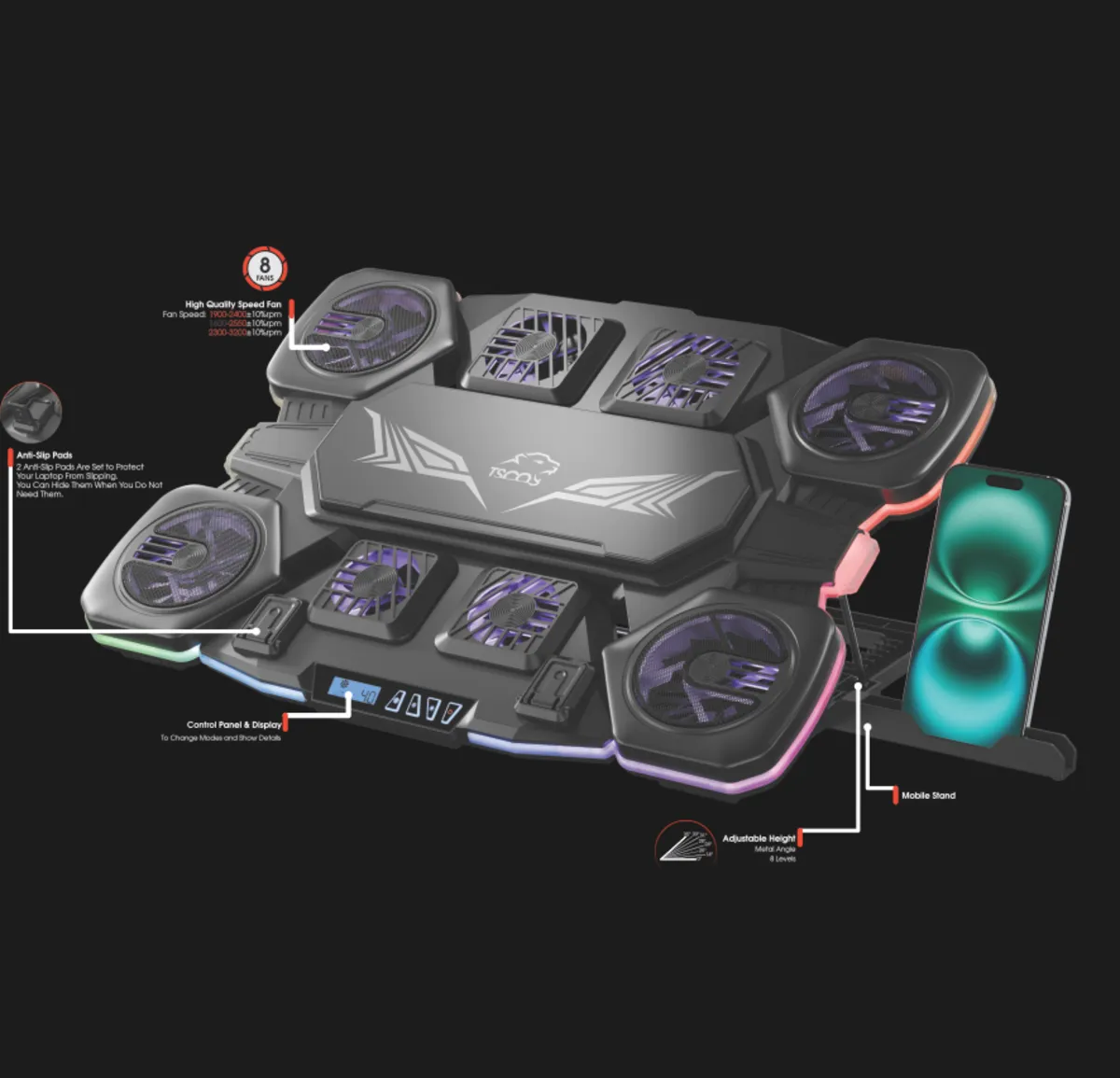 وقتی صحبت از استفاده طولانیمدت از لپتاپهای گیمینگ سنگین میشود، داشتن یک کولپد حرفهای و قابلاعتماد تبدیل به یک ضرورت میشود. کول پد گیمینگ تسکو مدل GCLP 3154 با طراحی مهندسیشده، فناوری خنککننده نیمههادی و هشت فن در سه سایز مختلف، دقیقاً همان محصولی است که میتواند نیاز گیمرهای حرفهای و کاربران سنگین را به بهترین شکل برآورده کند. این محصول ترکیبی از قدرت خنککنندگی، زیبایی طراحی و امکانات کاربردی است که تجربه کاربری کاملاً متفاوتی را رقم میزند.