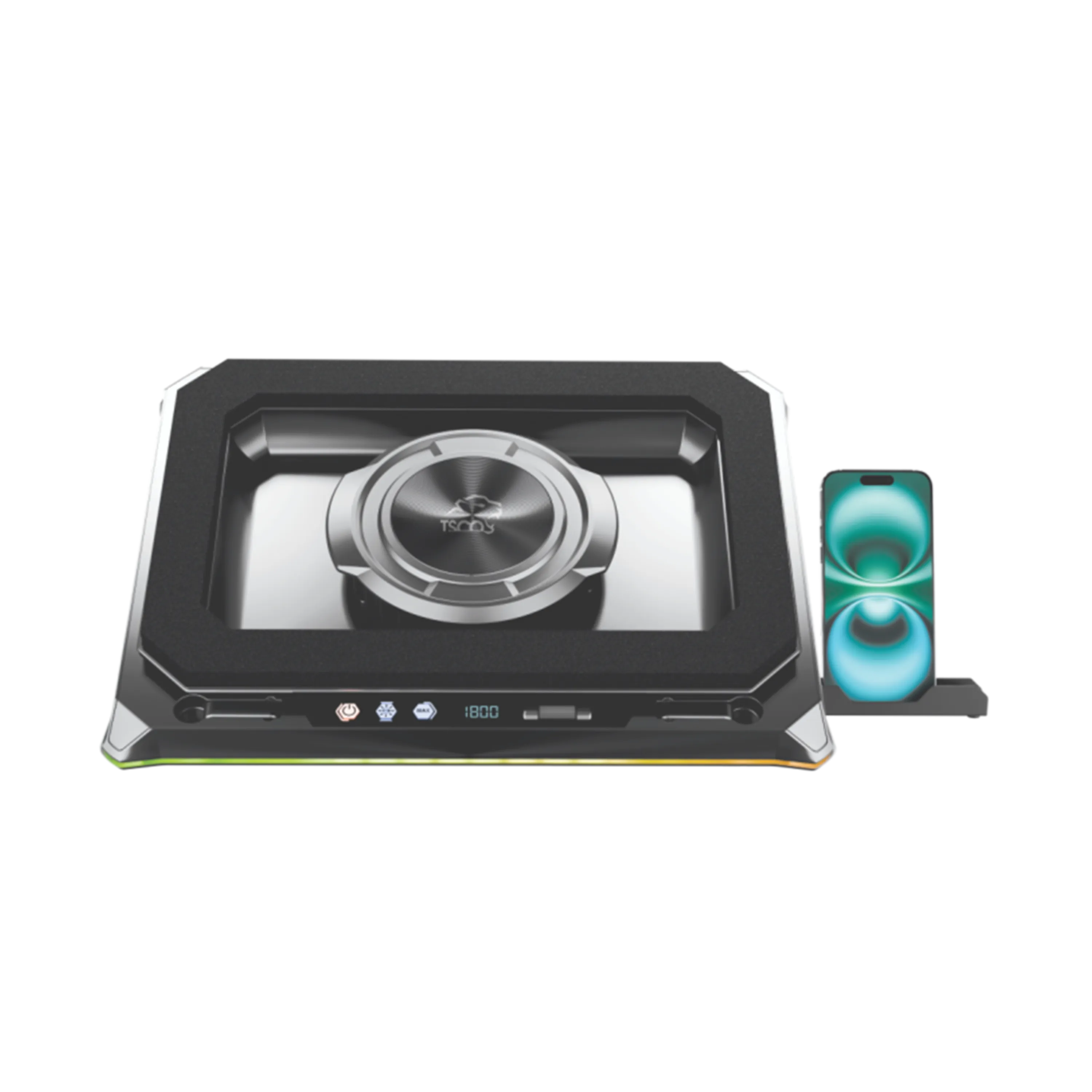 کولپد گیمینگ TSCO مدل GCLP 3160 با فن 140 میلیمتری و سرعت متغیر تا 2400 دور در دقیقه، نورپردازی RGB، هاب 5 پورتی USB/Type-C و قابلیت تنظیم ارتفاع در 5 سطح، انتخابی حرفهای برای لپتاپهای تا سایز 19 اینچ است.