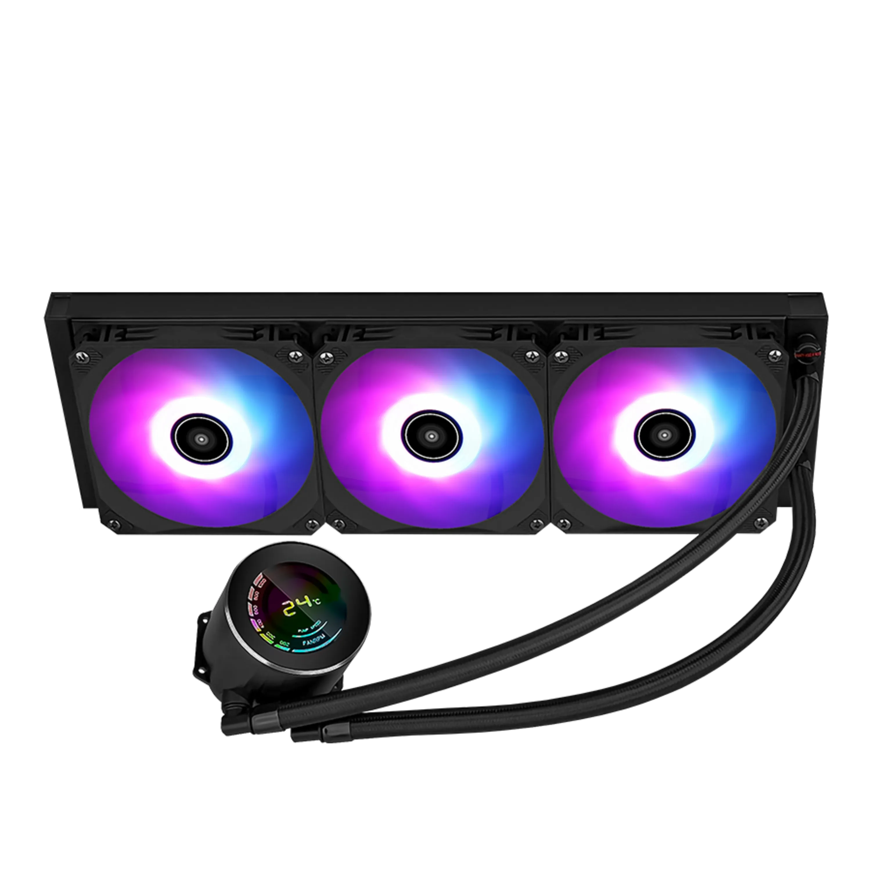 خنک کننده مایع پردازنده اوست GT-AVT360 ARGB یک کولر قدرتمند بوده که برای انواع پردازنده کامپیوتری گیمینگ و رندرینگ مناسب است. فرم ظاهری این مدل GT-AVT2360 ARGB از نوع خنک کننده مایع بوده و دارای یک رادیاتور 360 میلی متری میباشد. بنابراین شرکت اوست برای تهویه کارآمد این خنک کننده، سه عدد فن 120 میلیمتری برای بخش رادیاتور در نظر گرفته است. خنک کننده پردازنده GT-AVT360 ARGB از اکثر سوکت های پردازنده پشتیبانی کرده و میتوان آن را بر روی پلتفرم های Intel و AMD نصب نمود. فن های خنک کننده اوست GT-AVT360 ARGB توانایی چرخش با سرعت 800 تا 1800 دور در دقیقه را دارند. بنابراین قادر به انتقال جریان هوا با توان فوق العاده 63 فوت مکعب در دقیقه و همچنین ایجاد نویز کم تا حداکثر 30 دسی بل میباشد. لازم به توضیح است که بر روی پمپ این خنک کننده مایع یک نمایشگر قرار دارد که دمای پردازنده و سرعت چرخش پمپ را نمایش میدهد و برای نمایش اطلاعاتی صحیح بر روی این نمایشگر، نیاز به نصب نرمافزار AWEST HW Monitor Service است.