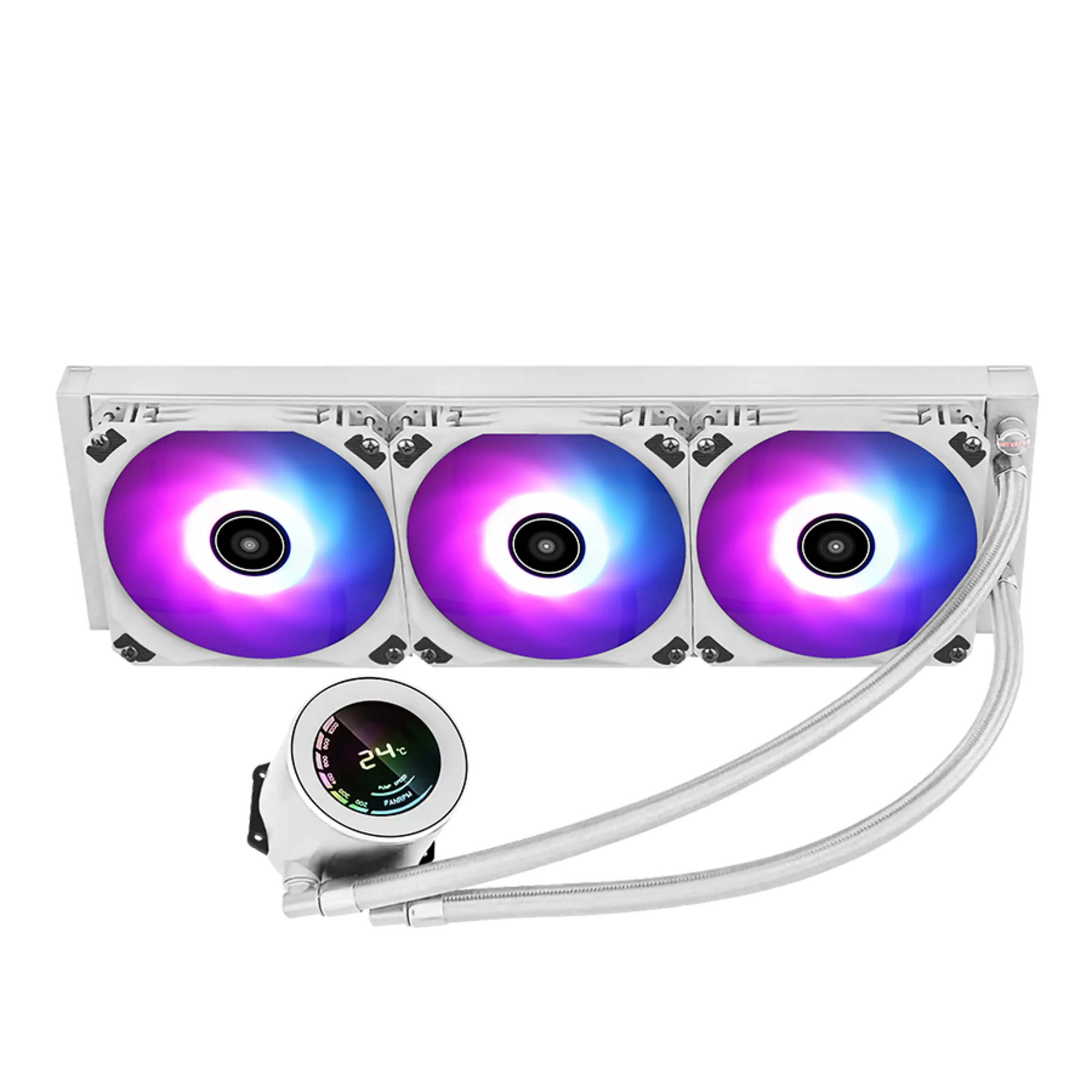 خنک کننده مایع پردازنده اوست GT-AVT360W ARGB یک کولر قدرتمند بوده که برای انواع پردازنده کامپیوتری گیمینگ و رندرینگ مناسب است. فرم ظاهری این مدل GT-AVT2360W ARGB از نوع خنک کننده مایع بوده و دارای یک رادیاتور 360 میلی متری میباشد. بنابراین شرکت اوست برای تهویه کارآمد این خنک کننده، سه عدد فن 120 میلی متری برای بخش رادیاتور در نظر گرفته است. خنک کننده پردازنده GT-AVT360W ARGB از اکثر سوکت های پردازنده پشتیبانی کرده و می توان آن را بر روی پلتفرم های Intel و AMD نصب نمود. فن های خنک کننده اوست GT-AVT360W ARGB توانایی چرخش با سرعت 800 تا 1800 دور در دقیقه را دارند. بنابراین قادر به انتقال جریان هوا با توان فوق العاده 63 فوت مکعب در دقیقه و همچنین ایجاد نویز کم تا حداکثر 30 دسی بل میباشد. لازم به توضیح است که بر روی پمپ این خنک کننده مایع یک نمایشگر قرار دارد که دمای پردازنده و سرعت چرخش پمپ را نمایش میدهد و برای نمایش اطلاعاتی صحیح بر روی این نمایشگر، نیاز به نصب نرم افزار AWEST HW Monitor Service است.