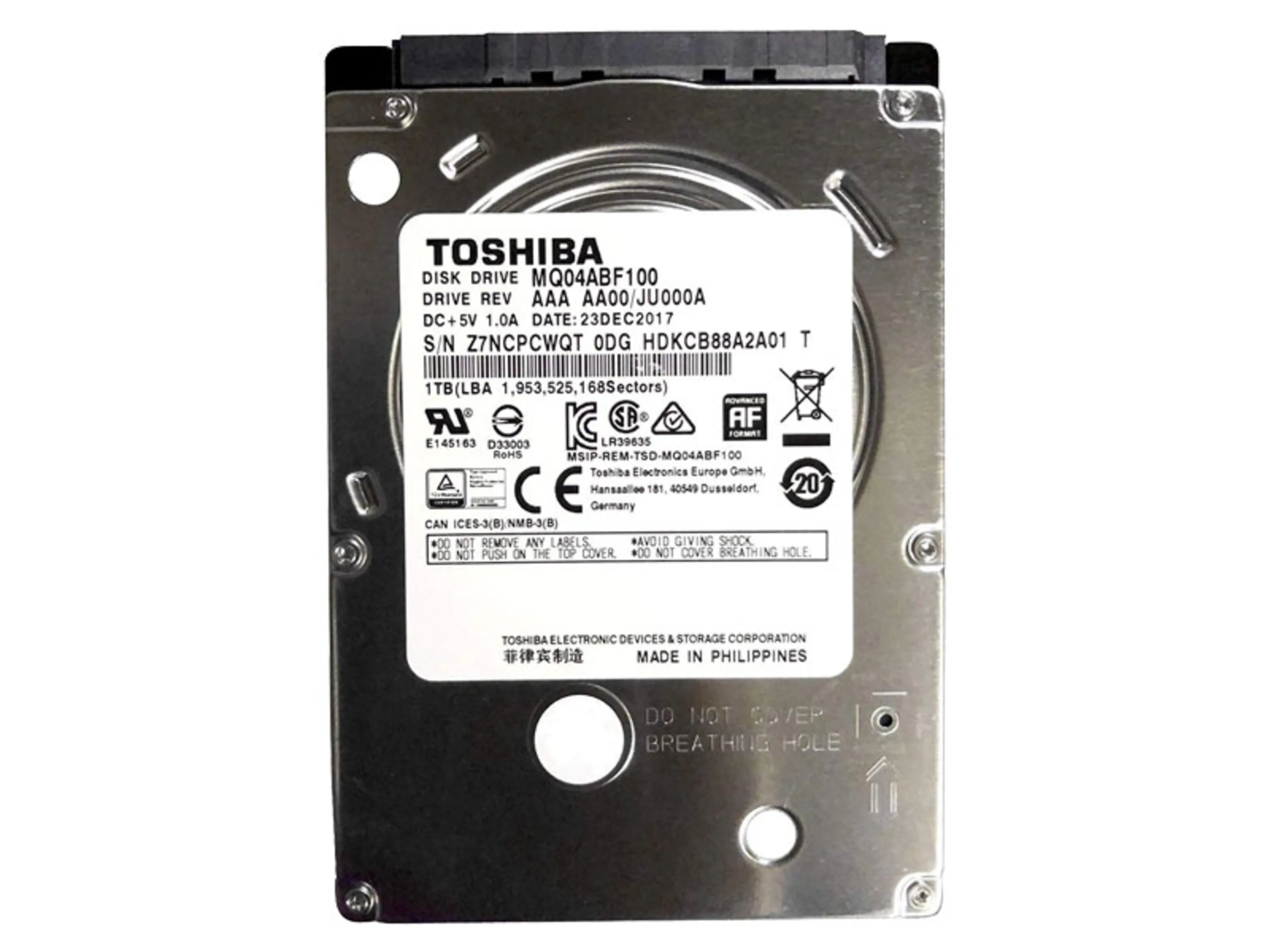 هارددیسک MQ04ABF100 محصولی از شرکت توشیبا ساخت کشور فیلیپین است که از یک ترابایت حافظه برای ذخیرهسازی اطلاعات بهره میبرد. هارددیسک توشیبا مدل MQ04ABF100 از نوع اینترنال است و با توجه به فرم فاکتور 2.5 اینچی که دارد، برای لپتاپها و کامپیوترهای All-In-One گزینهی مناسبی است. رابط این هارددیسک SATA3 است که میتواند اطلاعات را با سرعت و دقت خوبی انتقال دهد. میزان حافظهی کش (بافر) در هارددیسک MQ04ABF100 برابر با مقدار 128 مگابایت است. این میزان از حاظفهی کش مقدار نسبتا قابل قبولی برای یک هارددیسک اینترنال به شمار میرود. سرعت چرخش این هارددیسک شرکت توشیبا برابر با مقدار 5400 دور بر دقیقه است. مصرف انرژی کم و وزن مناسب این هارددیسک باعث شده که هنگام استفاده از آن مصرف انرژی و وزن لپتاپ تا حدی کم شود.