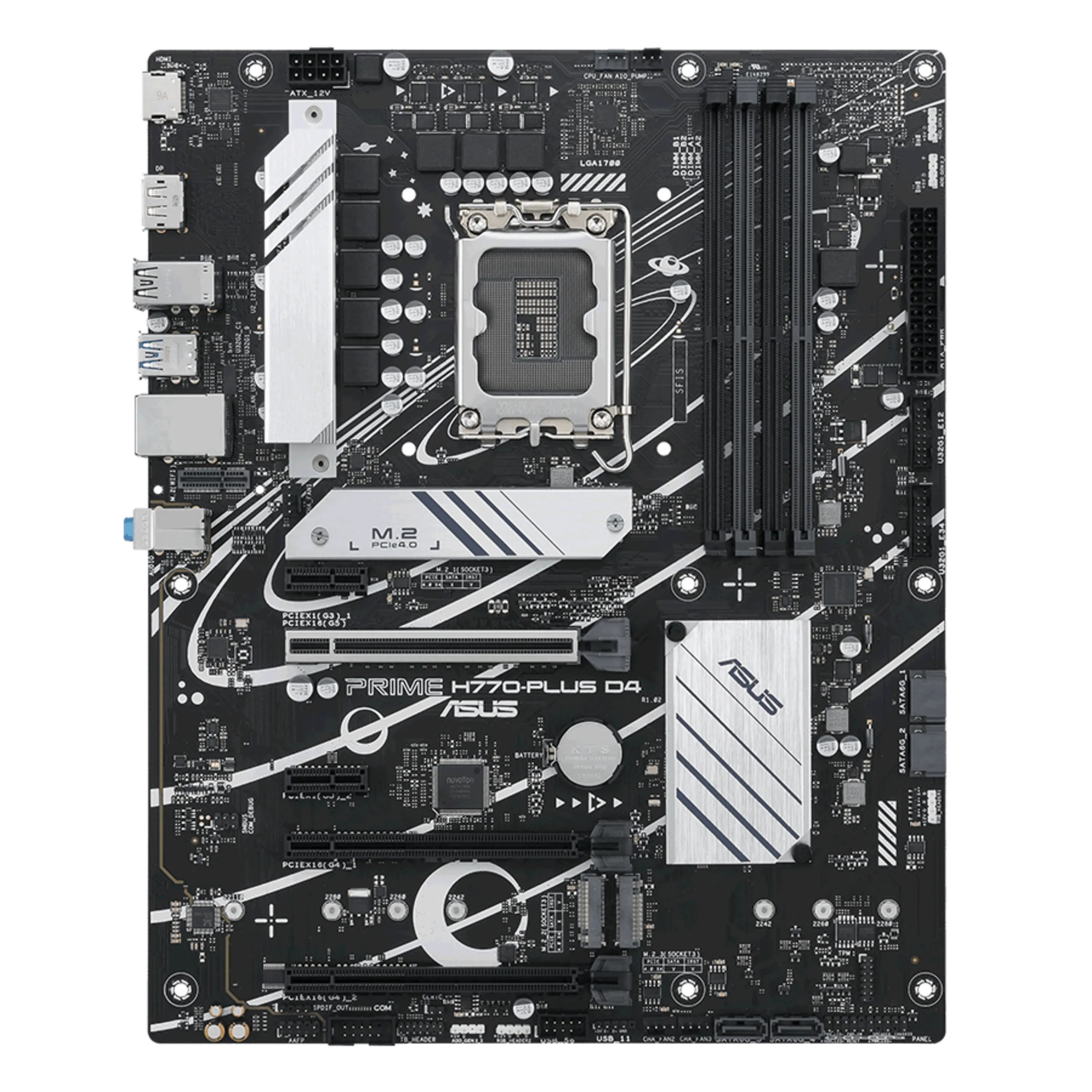 مادربرد ایسوس مدل Asus Prime H770-PLUS D4 یکی دیگر از مادربردهای میان رده و خوش قیمت این برند مطرح است که با فرم فاکتور ATX و تراشه Intel H770 تولید شده است. ایسوس برای این محصول سوکت LGA1700 را در نظر گرفته تا میزبان پردازندههای نسل دوازدهمی و سیزدهمی اینتل باشد. همانطور که مشخص است، ایسوس مادربردهای سری Prime خود را برای اسمبل سیستمهای میان رده و گیمینگ اقتصادی تولید نموده پس چنانچه در این دسته از کاربران قرار میگیرید، این محصول انتخاب مناسبی برای شما خواهد بود.