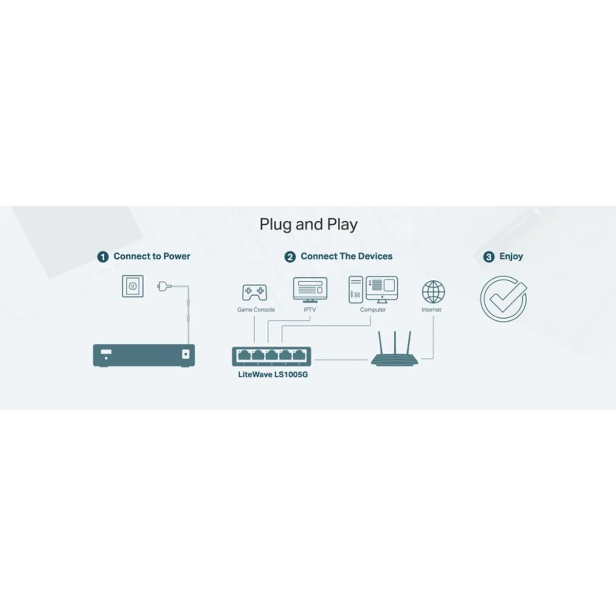 سوییچ TP-LINK LS1005G یک سوئیچ رومیزی 5 پورت گیگابیتی است که برای شبکههای خانگی و اداری کوچک طراحی شده است. این دستگاه با پشتیبانی از سرعتهای 10/100/1000Mbps امکان انتقال سریع دادهها را فراهم میکند و انتخابی اقتصادی و مطمئن برای کاربرانی است که به دنبال ارتقاء سرعت شبکه داخلی خود هستند