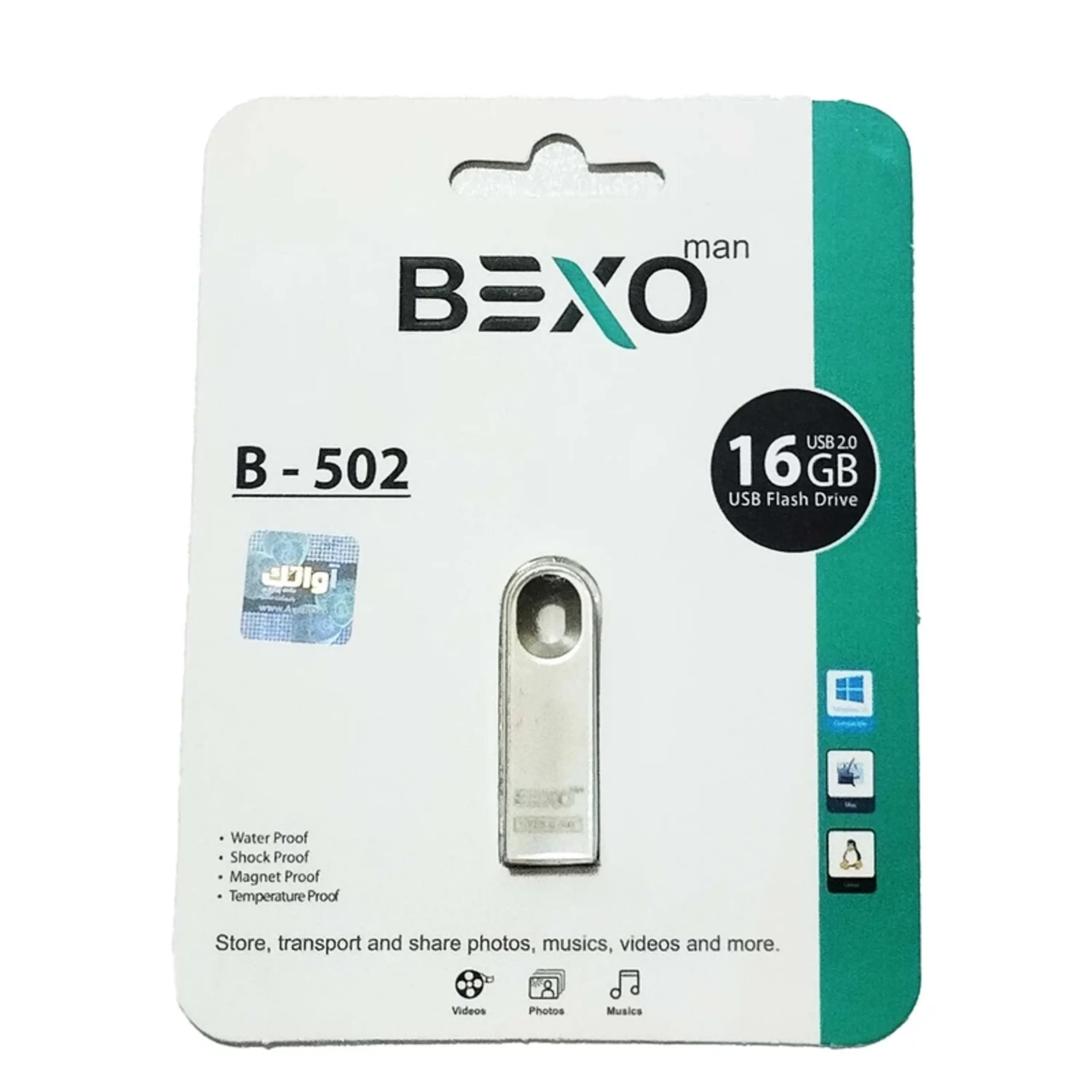 فلش مموری B-502 محصول شرکت بکسو با بدنه ی فلزی وخوش ساخت، دارای ابعادی کوچک و جمع جور می باشد. این فلش مموری از رابط USB2.0 بهره می برد. در قسمت بالایی این فلش شیاری قرار دارد که می توانید بوسیله ی بند نگهدارنده، آن فلش را به جاسوییچی و کیف خوA متصل نموده و از گم شدن آن جلوگیری گردد.