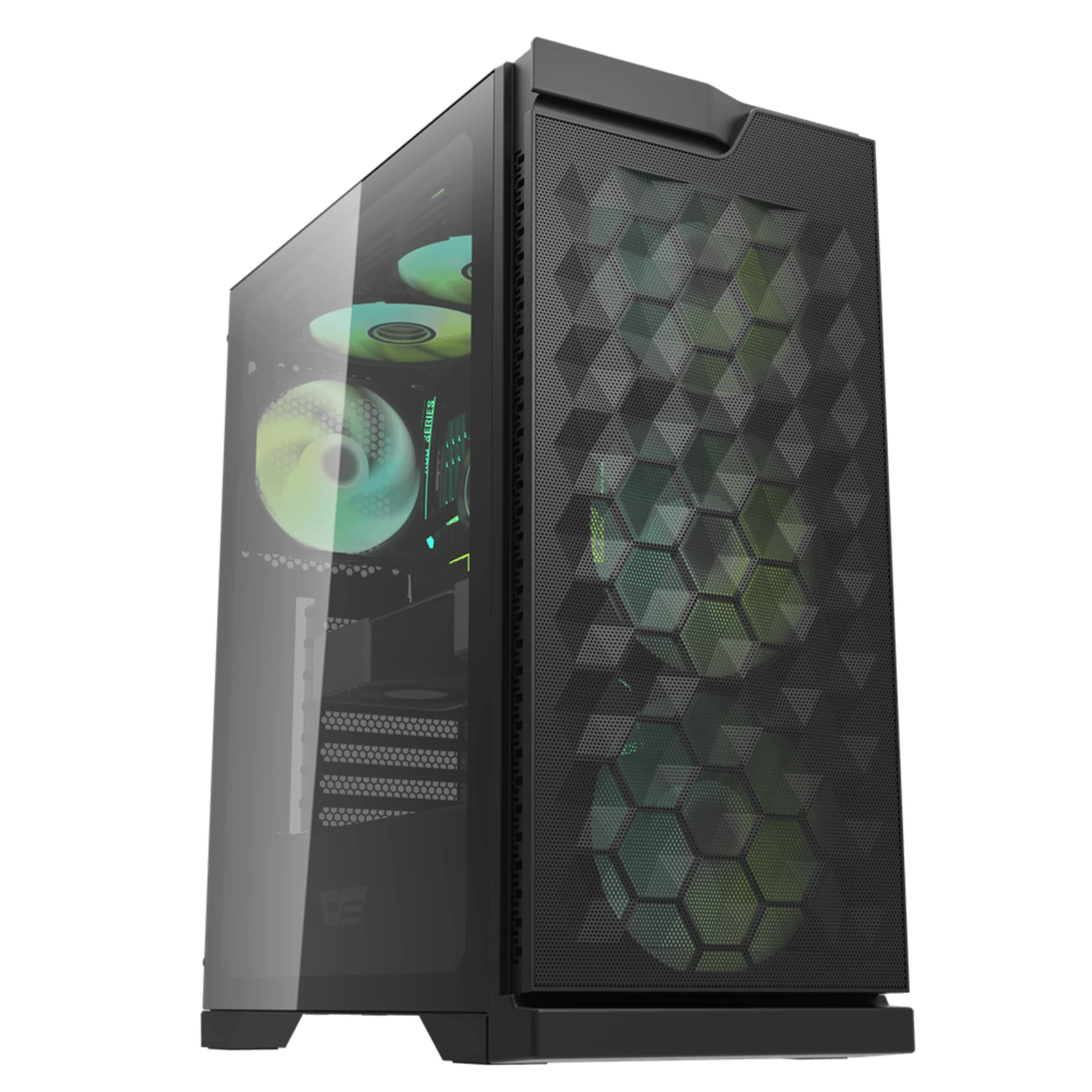 کیس گیمینگ DARKFLASH DK361 با طراحی مدرن و پنل جلویی مشبک، بهخوبی جریان هوا را برای سیستمهای گیمینگ فراهم میکند. پنل جانبی شیشهای حرارتدیده، نمای زیبایی از داخل کیس را ارائه میدهد. این کیس از مادربردهای ATX، Micro-ATX و Mini-ITX پشتیبانی میکند و فضای کافی برای نصب کارت گرافیک با طول 350 میلیمتر و خنککننده پردازنده با ارتفاع 160 میلیمتر را دارد. با پشتیبانی از حداکثر 6 فن و رادیاتورهای مختلف، امکان خنکسازی مؤثر سیستم را فراهم میکند. درگاههای USB 3.0 و 2.0، ورودی و خروجی صدا، و دکمههای پاور و ریست در پنل جلویی، دسترسی آسان به امکانات را میسر میسازد.