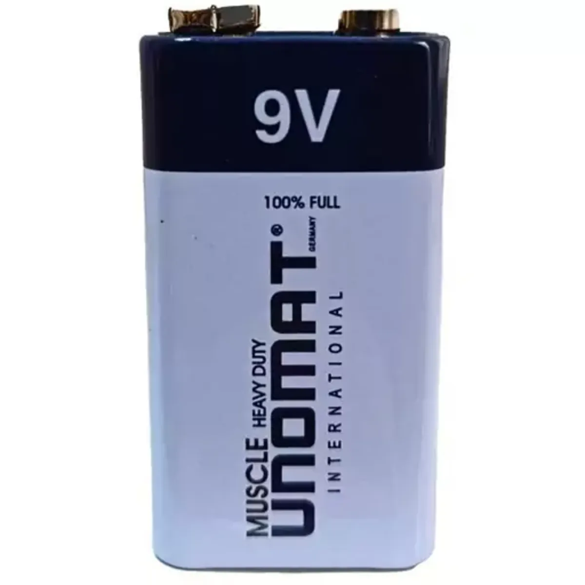 باتری کتابی ۹ ولت UNOMAT با ولتاژ پایدار و عمر مناسب، گزینهای کاربردی برای تجهیزات کممصرف مانند مولتیمتر، دتکتور دود و دستگاههای الکترونیکی خانگی است.