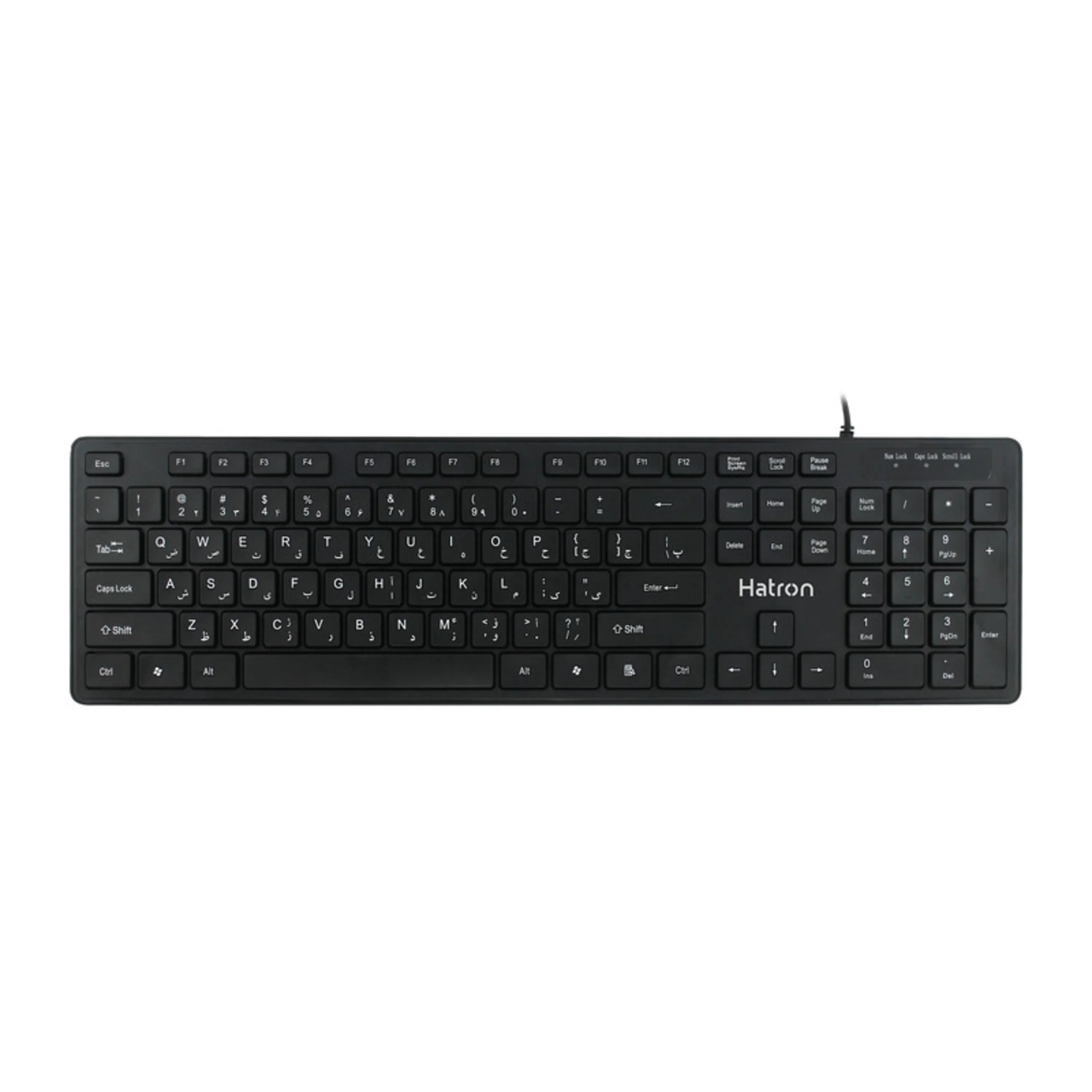 کیبورد هترون مدل HK203 از انواع کیبوردهای سیم دار هترون بوده که از طریق رابط USB به رایانه متصل می شود که بعد از اتصال به کامپیوتر آماده به کار می باشد. کلیدهای این کیبورد دارای برچسب چاپ فارسی است و همانند سایر کیبورد های رایج، دارای کلیدهای عددی در سمت راست خود است. این کیبورد در رنگ مشکی و با کلیدهای تخت به بازار عرضه می شود . در قسمت بالایی آن سه نشان گر LED وجود دارد که اطلاعاتی از وضعیت اتصال صحیح کیبورد به رایانه، فعال بودن کلید Caps Lock و فعال بودن کلید Num Lock را به کاربر ارائه می دهد. جنس بدنهی آن از پلاستیک با کیفیت است و میتواند مقاومت خوبی در برابر انواع صدمات داشته باشد. طراحی و ساخت این کیبورد با ارتفاع کم و باریکی که دارد امکان تایپ سریع را فراهم کرده و از خستگی شما در استفاده طولانی مدت جلوگیری می کند. این کیبورد گزینه خوبی برای افرادی است که به دنبال کیبوردی استاندارد هستند. این کیبورد با کابل استاندارد 1/5 متری که دارد برای مصارف خانگی ، ادارات ، سازمان ها و بانک ها مناسب هستند.