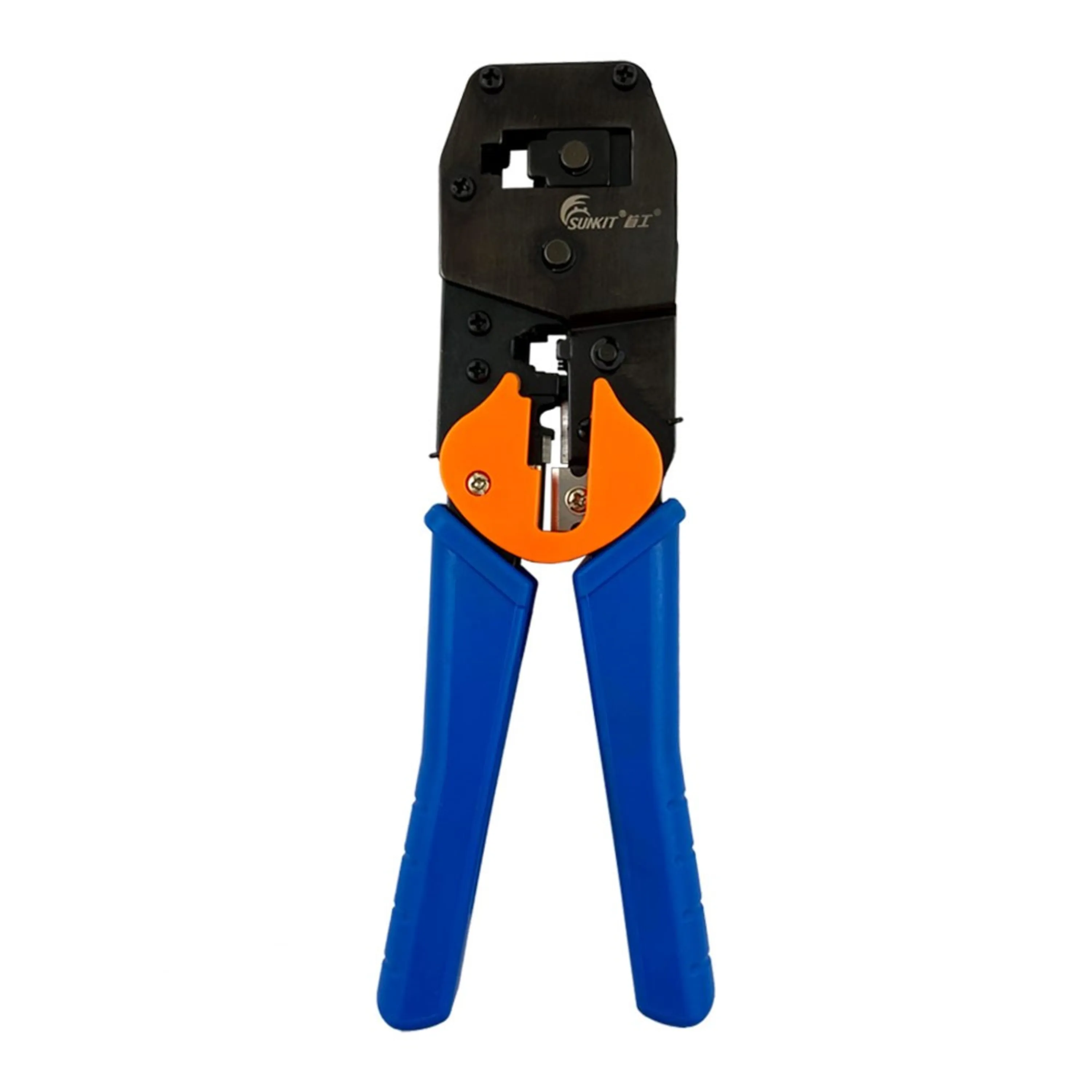 آچار شبکه SK-868E یک آچار شبکه همه کاره است که توانایی سوکت زدن سوکتهای RJ45 (برای شبکه)، RJ 11 (تلفن) و RJ12 را دارد. با استفاده از سیم لختکن تعبیه شده روی دسته این آچار میتوانید به راحتی سیمها و کابلها را لخت یا قطع کنید. این آچار از عهده لختکردن انواع سیمهای تخت (Flat) و گرد به راحتی برمیآید. آچار شبکه چندکاره SK-868E برای برش کابل یا اتصال سوکتهای RJ-45 ،RJ12 ،RJ11 در مدلهای مختلف، به کابل استفاده میشود. این آچار سبک و قابل حمل است و کاربریهای مختلف را پشتیبانی میکند.