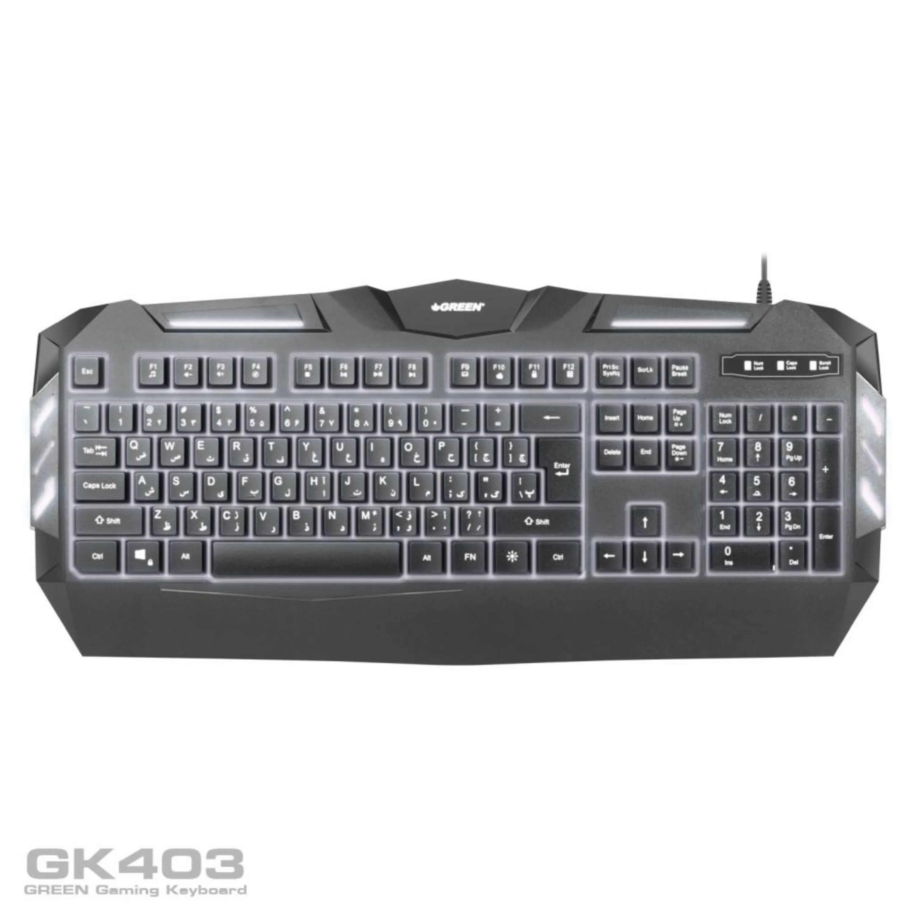 کیبورد GK403 در دسته بندی محصولات گیمینگ شرکت گرین قرار می گیرد و دارای کیفیت خوب و امکانات بسیار مناسبی است از نقاط قوت این کیبورد میتوان به داشتن نور پس زمینه با رنگ سفید اشاره کرد که قابلیت تنظیم شدت نور دارد. این کیبورد دارای طراحی ارگونومیک است و به لطف بهرمندی از استراحتگاه مچ دست مانع از خستگی گیمر ها در استفاده های طولانی مدت می شود. یکی دیگر از ویژگیهای این کیبورد، قابلیت بهرمندی از 19 کلید Anti Ghost است. این ویژگی به گیمر این اجازه را میدهد تا بتواند با خیال راحتتری بازی کند و دیگر نگران این نباشد که در هنگام فشردن همزمان چند کلید، یکی یا چند تا از آن کلیدها در بازی ثبت نشوند.
