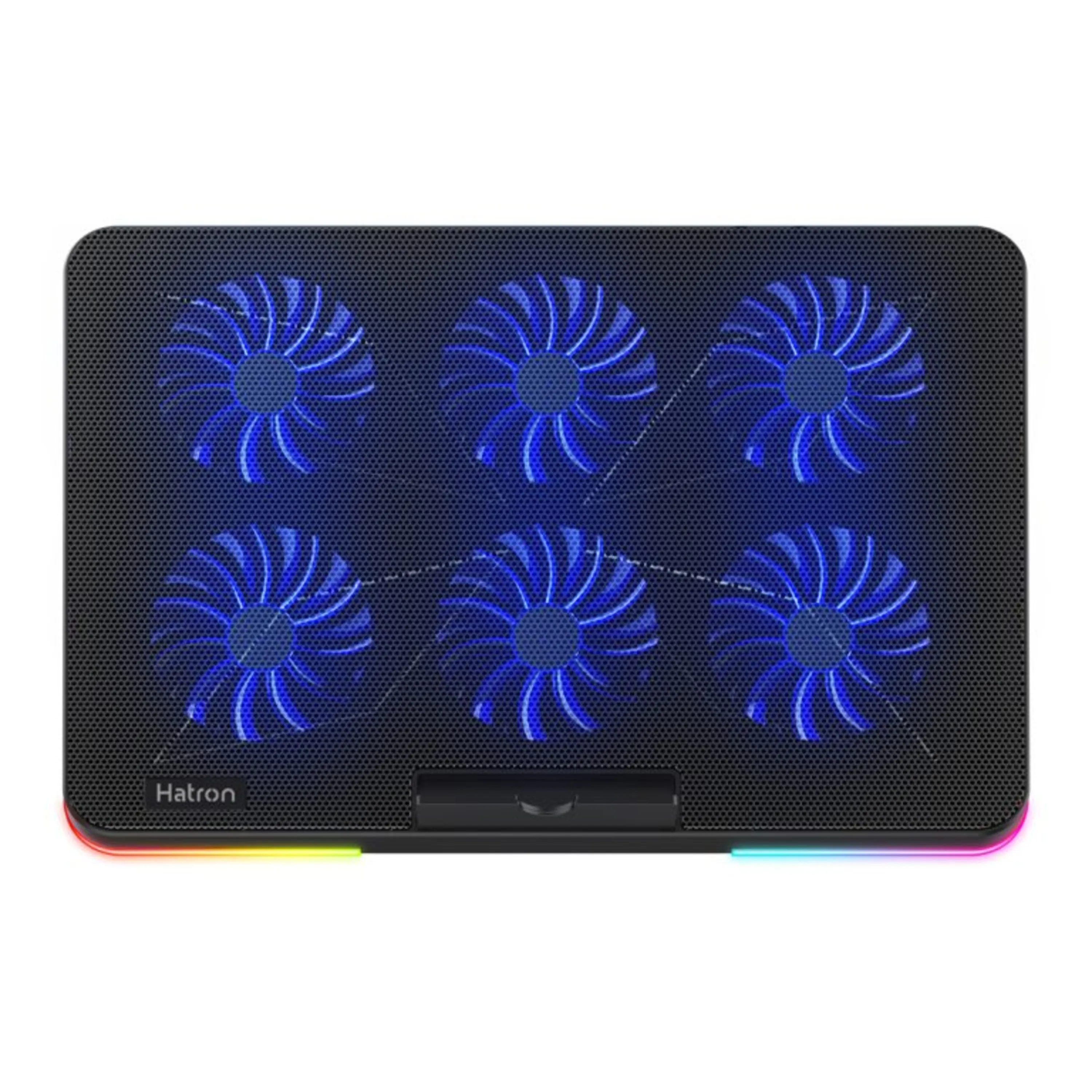 کول پد Hatron HCP-131 دارای 6 فن قدرتمند است که به طور مؤثری جریان هوا را در اطراف لپتاپ به گردش درمیآورد. این فنها قادر به کاهش دما در هنگام استفاده از نرمافزارهای سنگین یا بازیهای ویدیویی هستند.