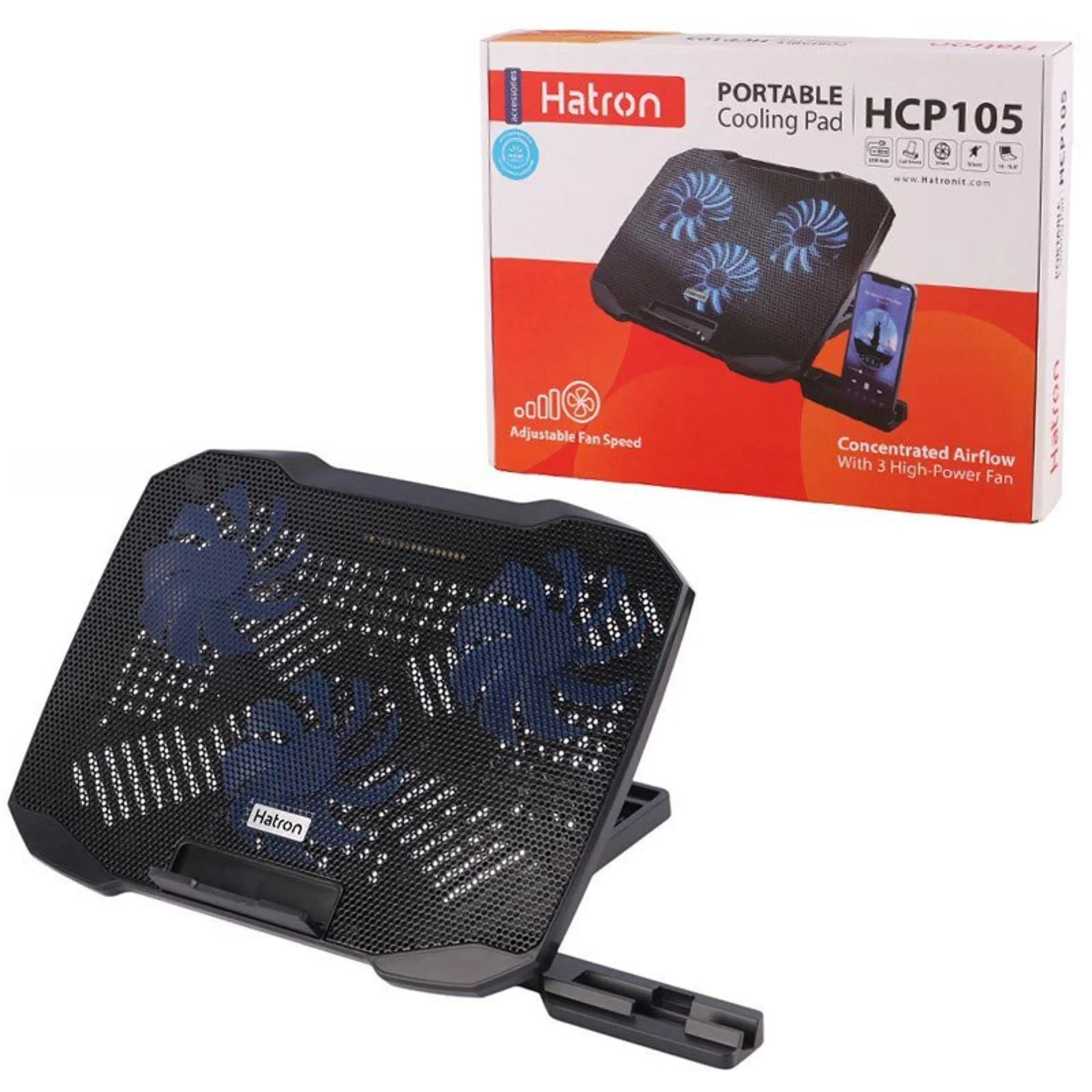 کول پد Hatron HCP-105 دارای 2 فن است و برای لپتاپهای تا 15.6 اینچ طراحی شده. این کول پد با طراحی ارگونومیک و پورت USB برای تأمین برق فنها، عملکرد خنککنندگی مناسبی دارد. فاقد نورپردازی LED است و از مواد سبک و مقاوم ساخته شده، که حمل و نقل را آسان میکند.