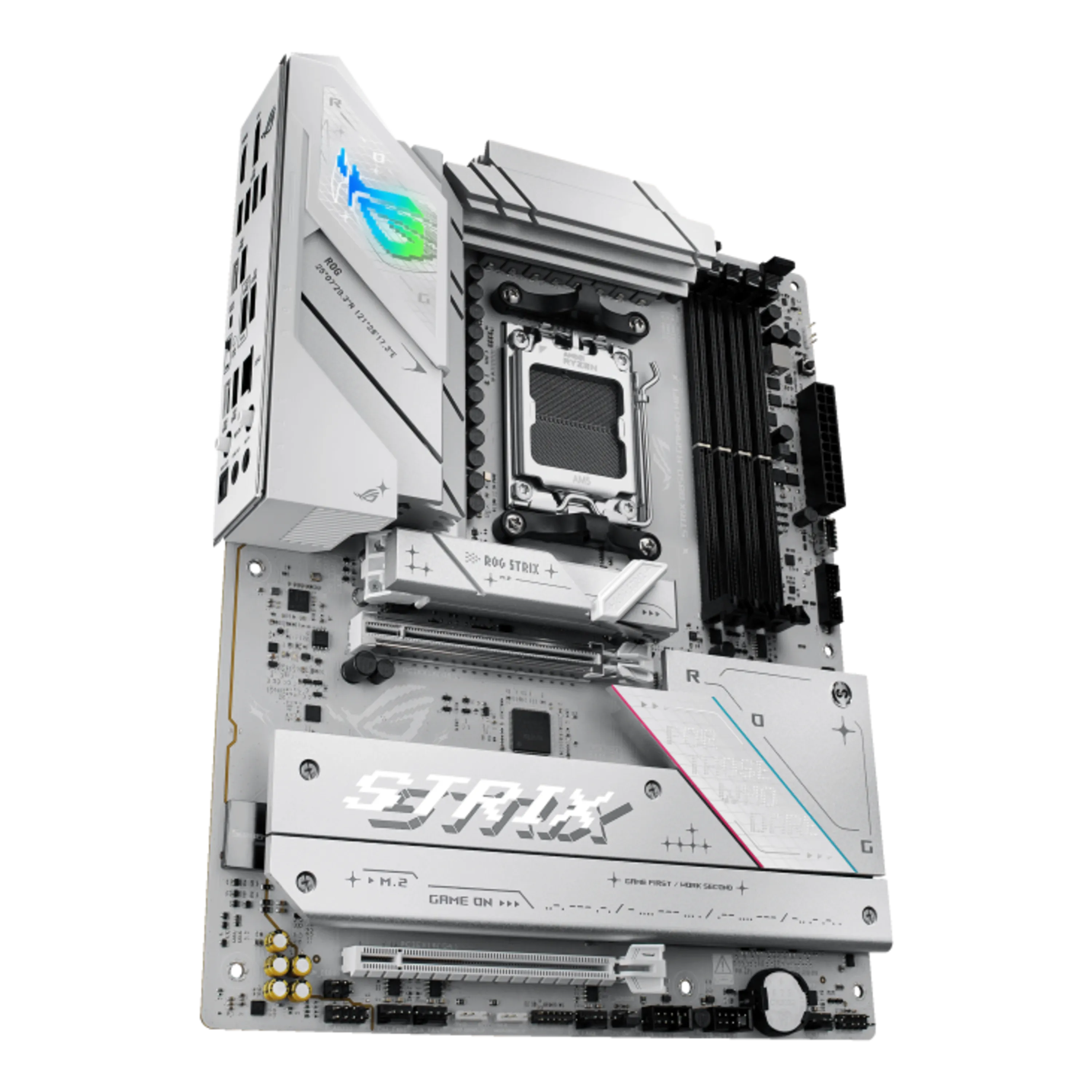 در بخش طراحی ظاهری، ASUS ROG STRIX B850-A دارای ظاهر سفید-نقرهای بسیار زیبا با نورپردازی قابل تنظیم Aura Sync است که هماهنگی کامل با دیگر قطعات گیمینگ مثل رم RGB، فنها و کیسهای شیشهای را فراهم میکند. همچنین خنککنندههای گسترده VRM، هیتسینکهای مخصوص اسلات M.2 و پوشش I/O تقویتشده، عملکرد پایدار سیستم را در شرایط پردازش سنگین و اورکلاک تضمین میکنند.