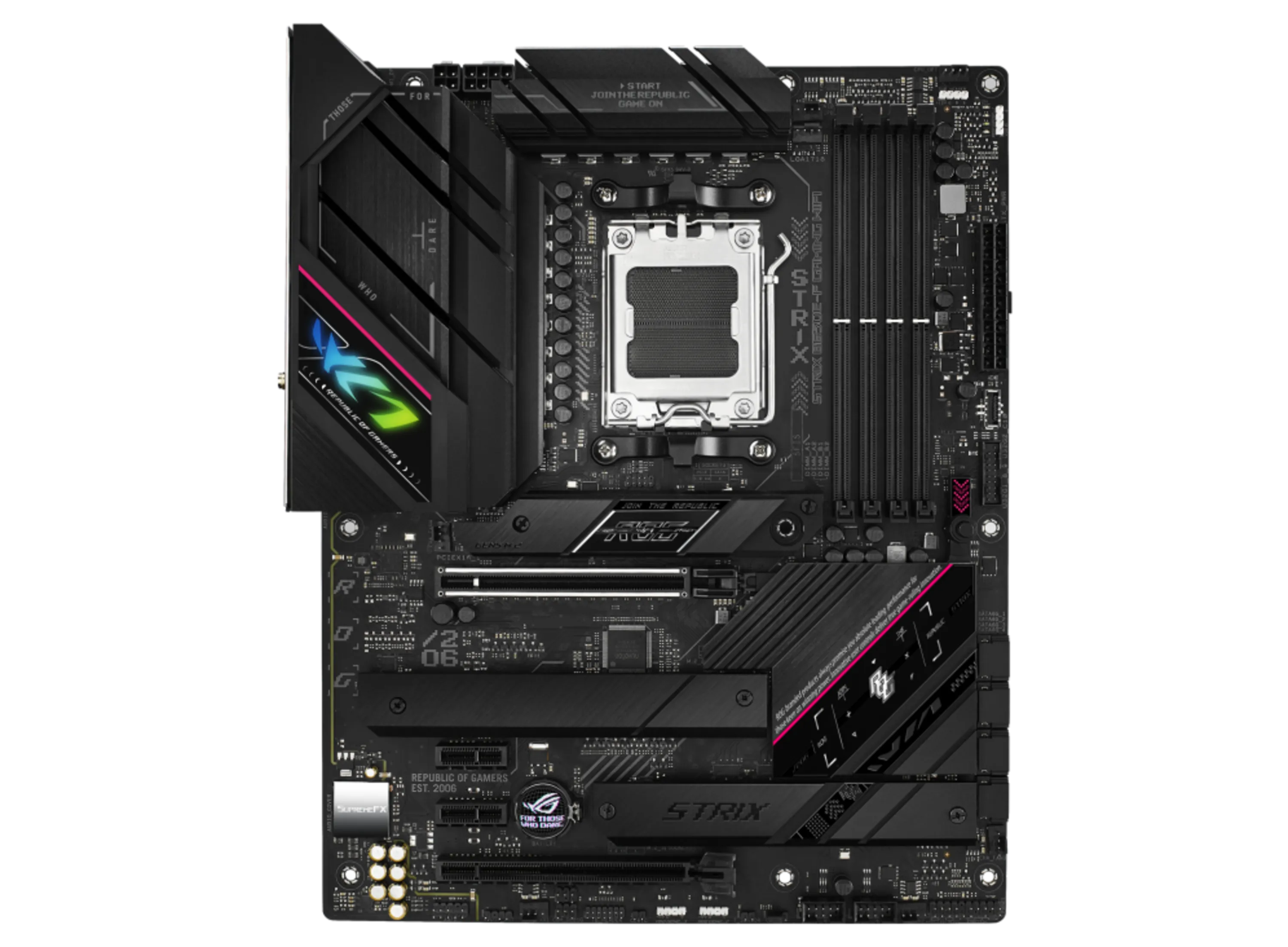 مادربرد ASUS ROG STRIX B650E-F GAMING WIFI یکی از مادربردهای حرفهای و قدرتمند سری ROG است که با چیپست AMD B650E و سوکت AM5 طراحی شده تا از پردازندههای نسل جدید AMD Ryzen 7000 پشتیبانی کند. این مادربرد بهویژه برای گیمرها و کاربران حرفهای که به دنبال عملکرد بالا، قابلیت اورکلاکینگ پیشرفته و امکانات مدرن اتصال هستند، ساخته شده است.