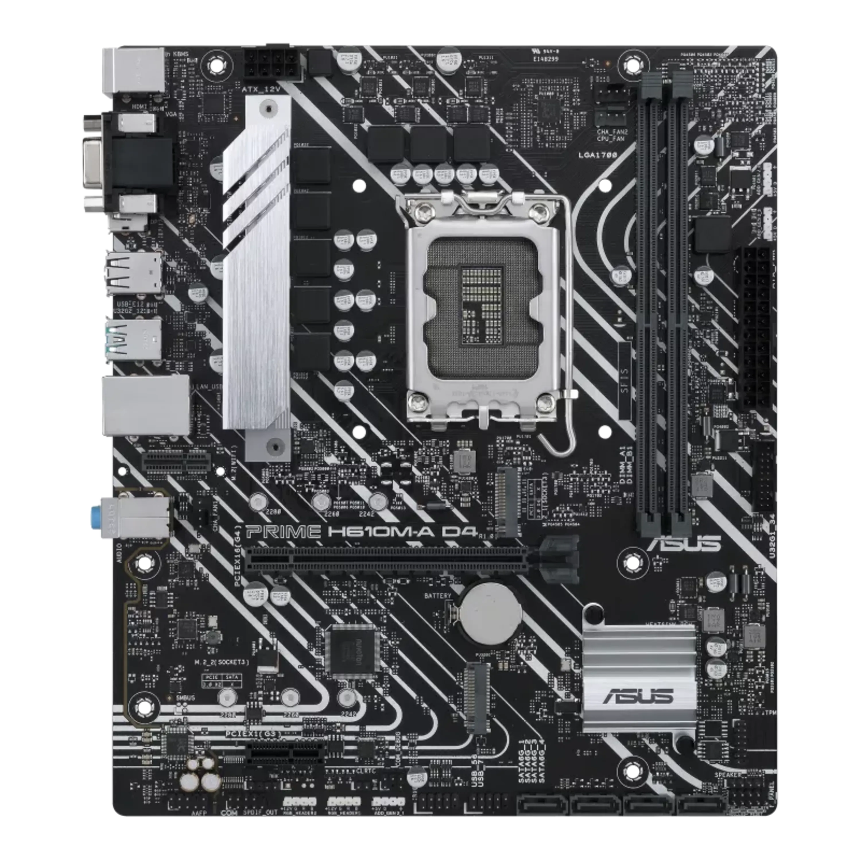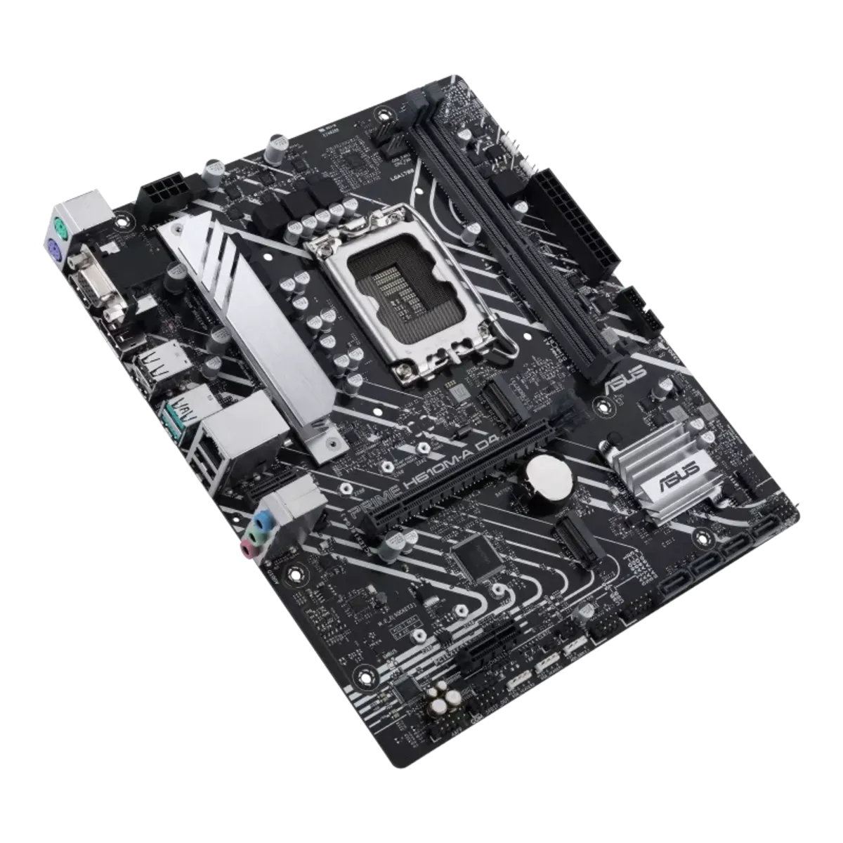 مادربرد ASUS PRIME H610M-A D4 یک مادربرد Micro-ATX اقتصادی و باکیفیت است که از پردازندههای نسل 12 و 13 اینتل با سوکت LGA1700 پشتیبانی میکند. این مادربرد دارای دو اسلات حافظه DDR4 تا 64 گیگابایت، اسلات PCIe 4.0 برای کارت گرافیک، اسلات M.2 و چندین پورت USB و خروجی تصویر HDMI و VGA است. مناسب برای کاربران خانگی، اداری و گیمینگ سبک که به دنبال عملکرد خوب با قیمت مناسب هستند.